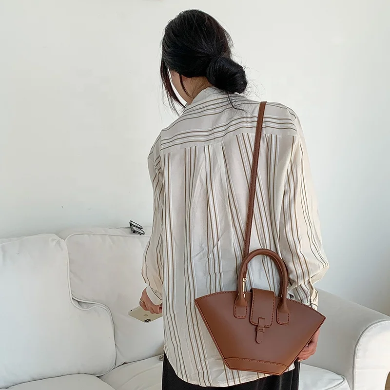 New Trend Design Advanced Handbag PU Leather Decoration Large Capacity Tote Bag Retro Style Bucket Bag
