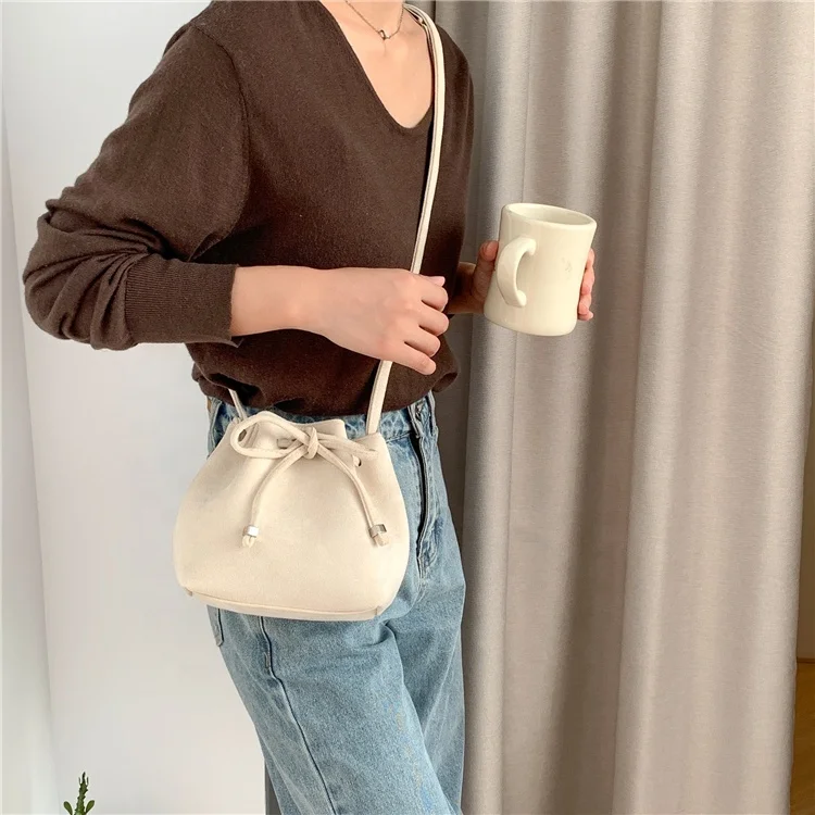 New Drawstring Fold Shoulder Bags Women Fashion South Korean Style Bucket Bag Plush Small Crossbody