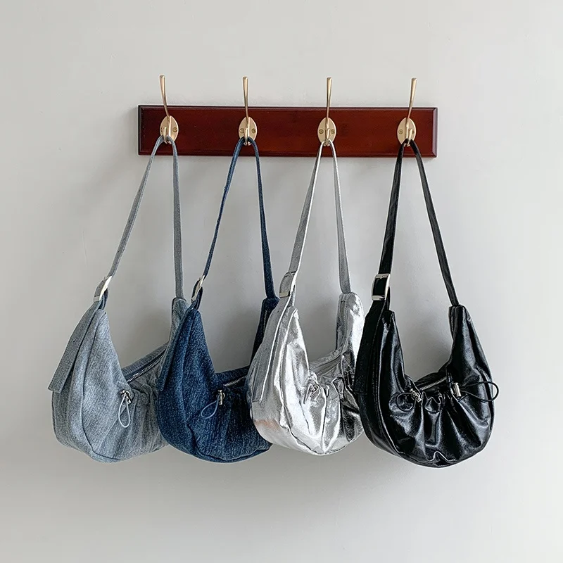New Silver Fashion Women's Bag Wrinkled Vegetarian Messenger Bags Soft PU Leather Shoulder Bag