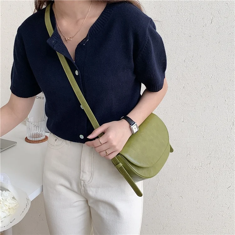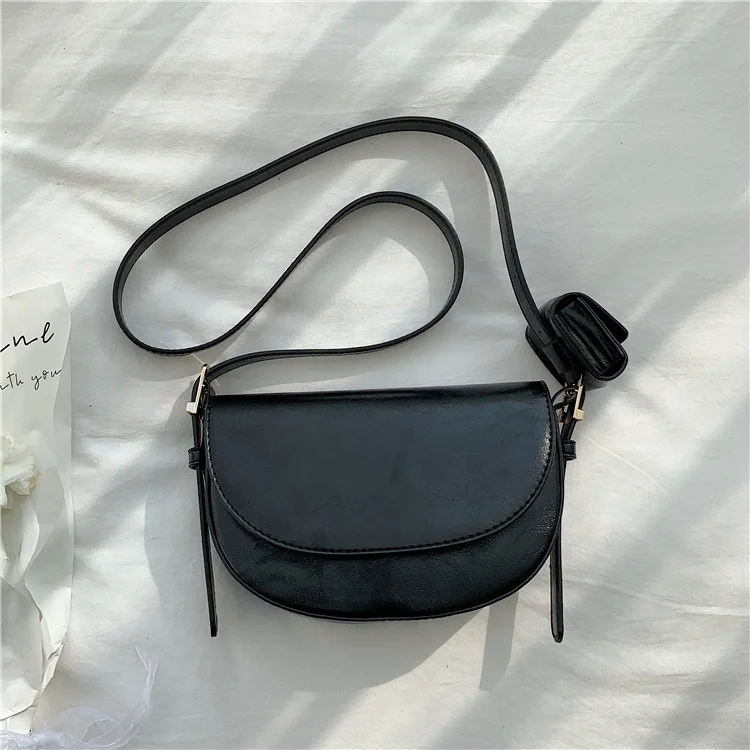 Wholesale Korea PU Leather Vegan Fashion Flip Cover Women's Shoulder Bags Crossbody Semicircular Small Bag Women's Messenger Bag
