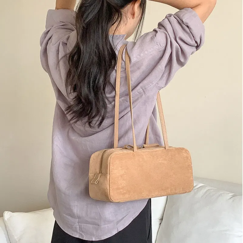 Custom Guangzhou Fashion Trending Suede Bolsos De Mujer Women'S Zipper Shoulder Bag Boston Bags for Women