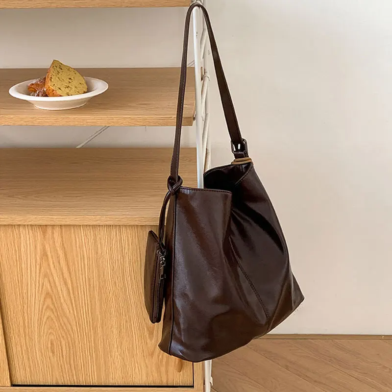 Designer Vintage Popular Ladies Women Crossbody Shoulder Hand Bags Fashion Casual Large Capacity Cowhide Leather Bucket Bag 2026