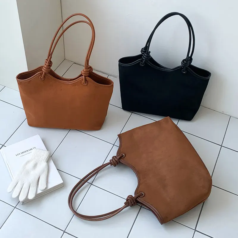 Custom Logo Large Capacity Woman Fashion Trending Casual Vintage Suede Shopping Shoulder Bags Women'S Tote Bag