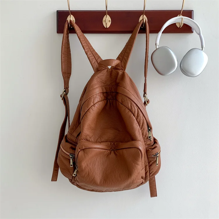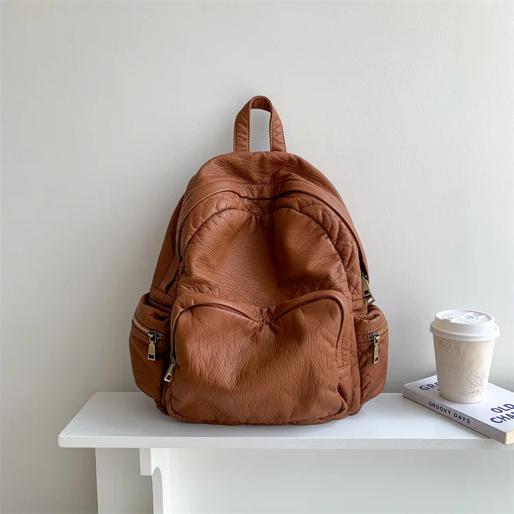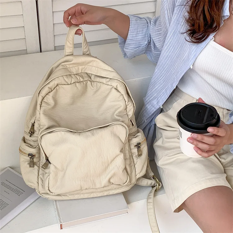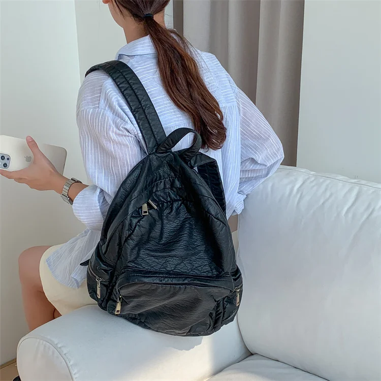 Wholesale Simple Multiple Pockets Women's Backpacks Laptop Bag Travel Sports Waterproof Zipper PU Leather Backpacks for Girl