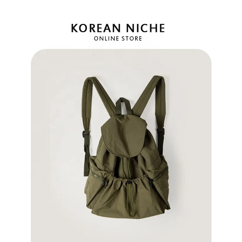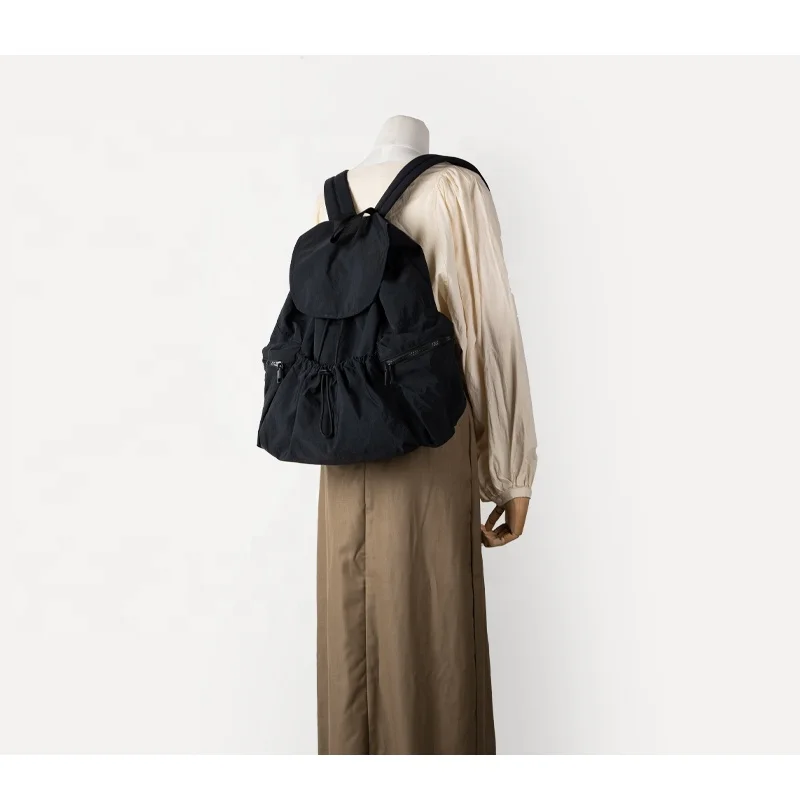 Custom Folded Drawstring Nylon Backpack Unisex Style Large Capacity Travel Backpack Casual Waterproof Student School Bag
