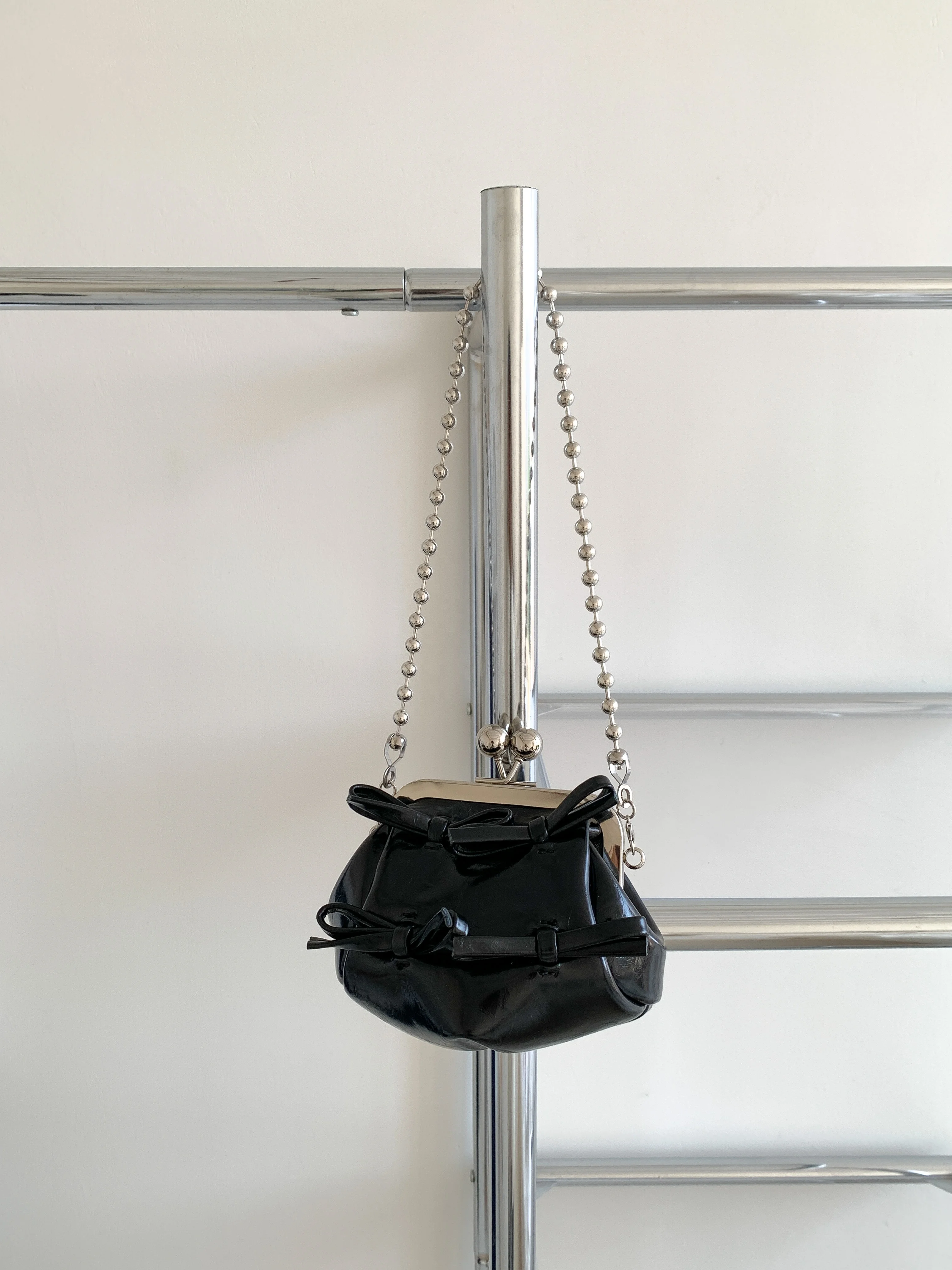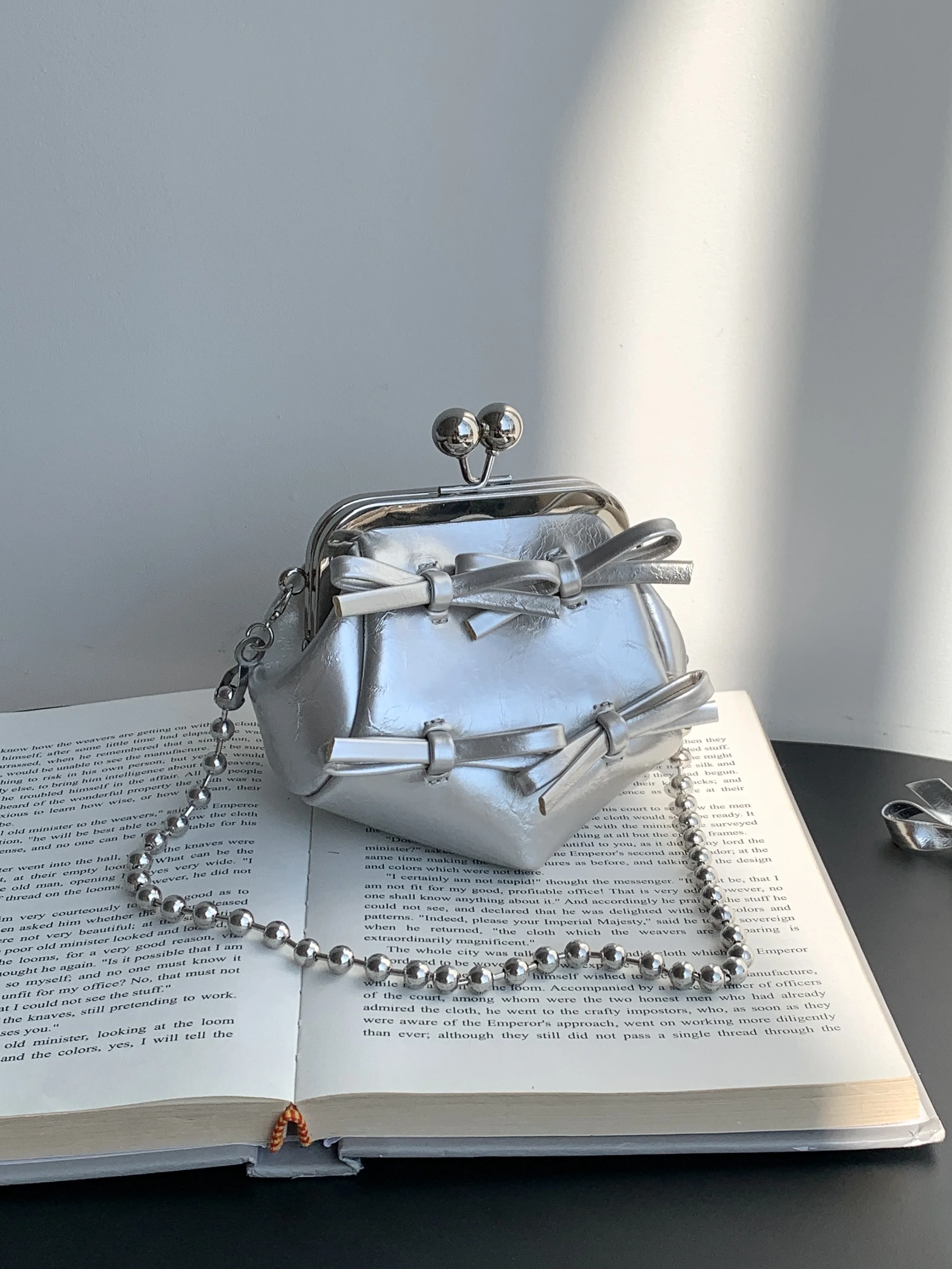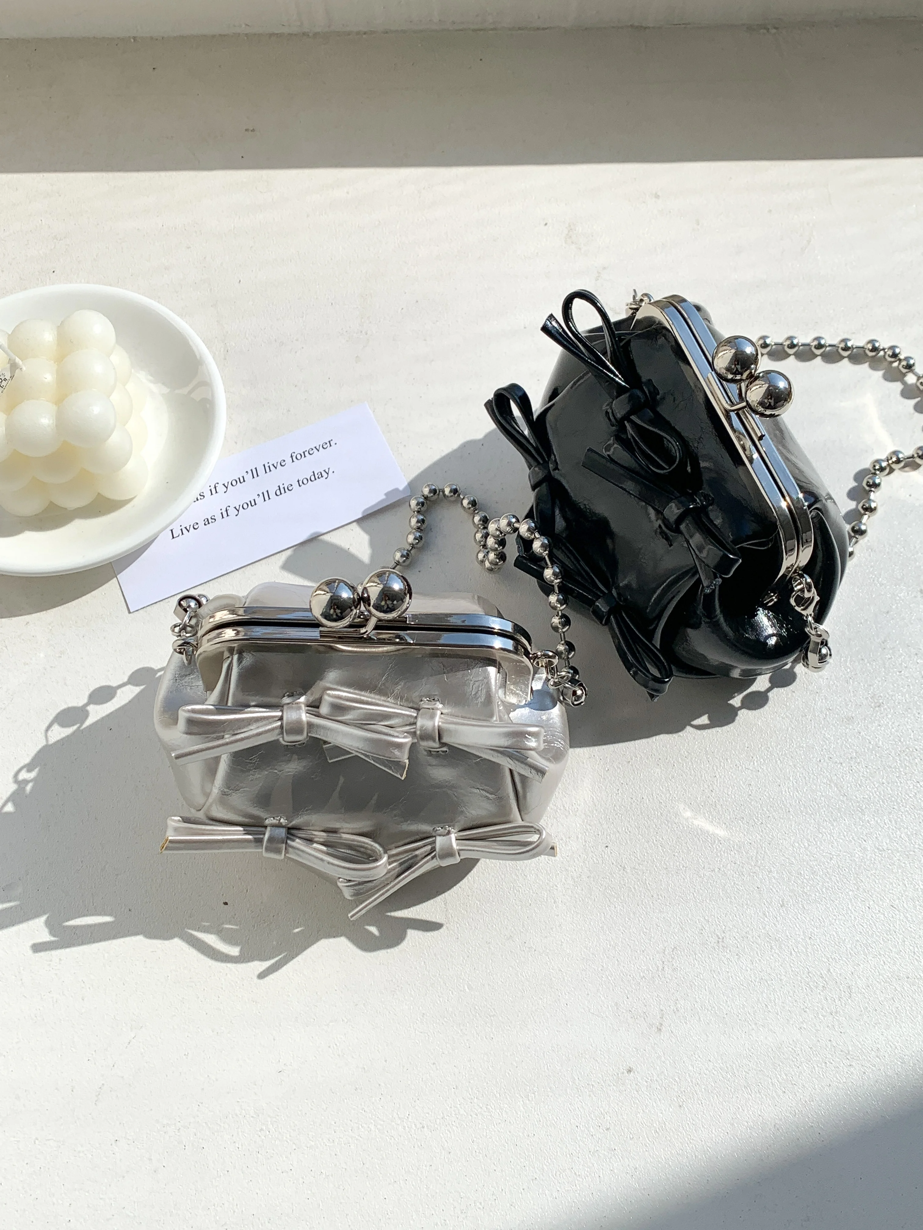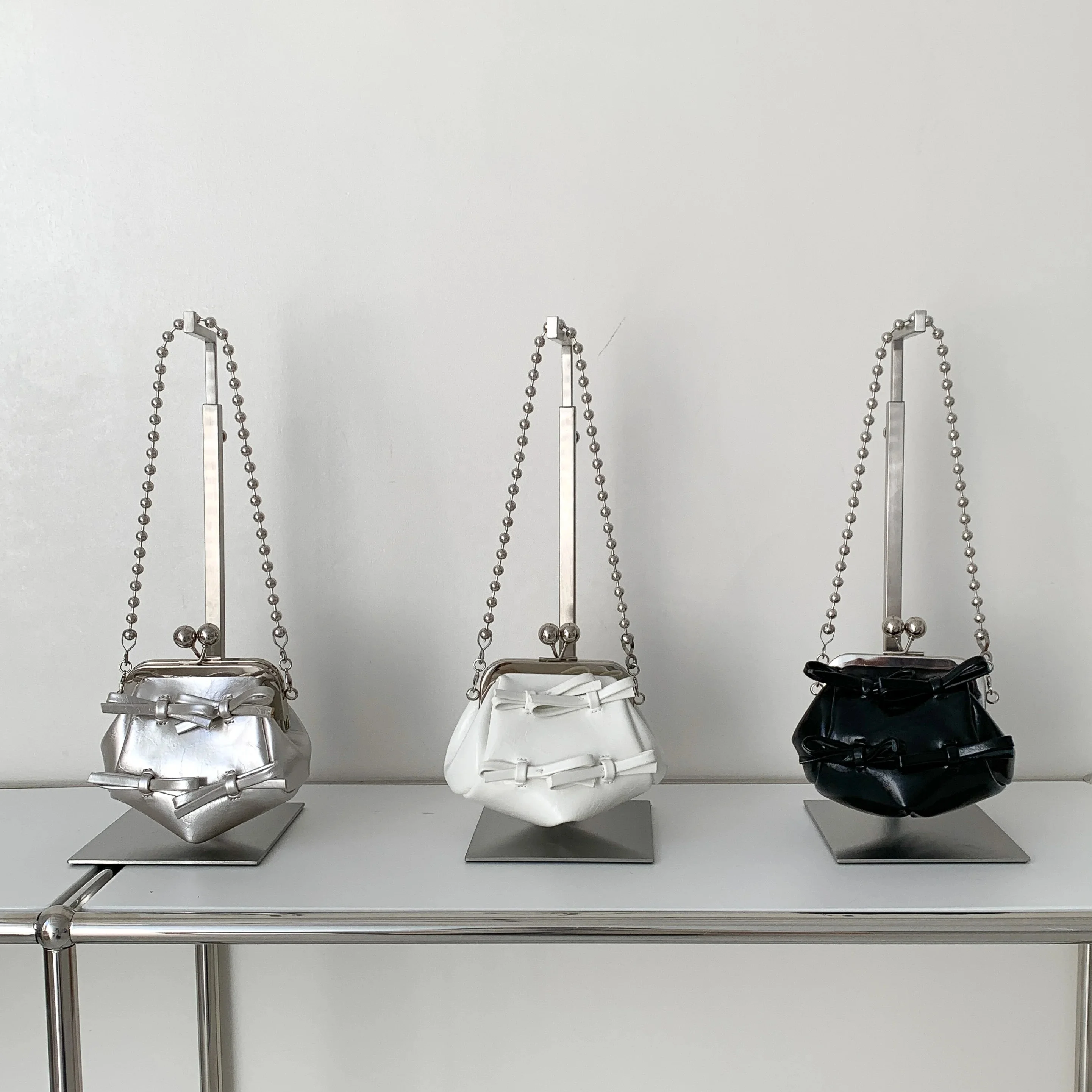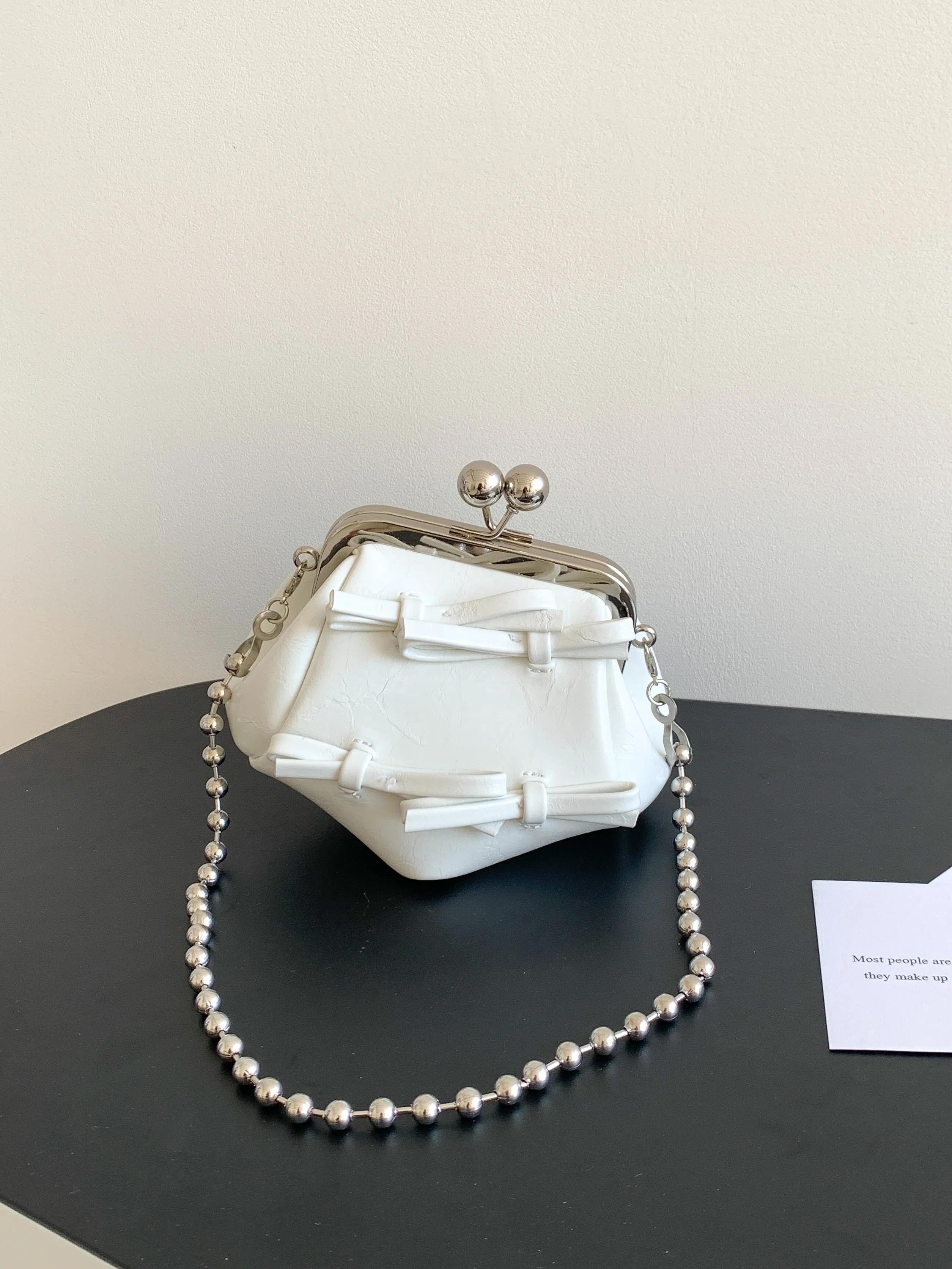 Wholesale Fashion Mini Clip Chain Bag Bow Bead Chain Shoulder Bag PU Leather Cute Lipstick Bag for Girl