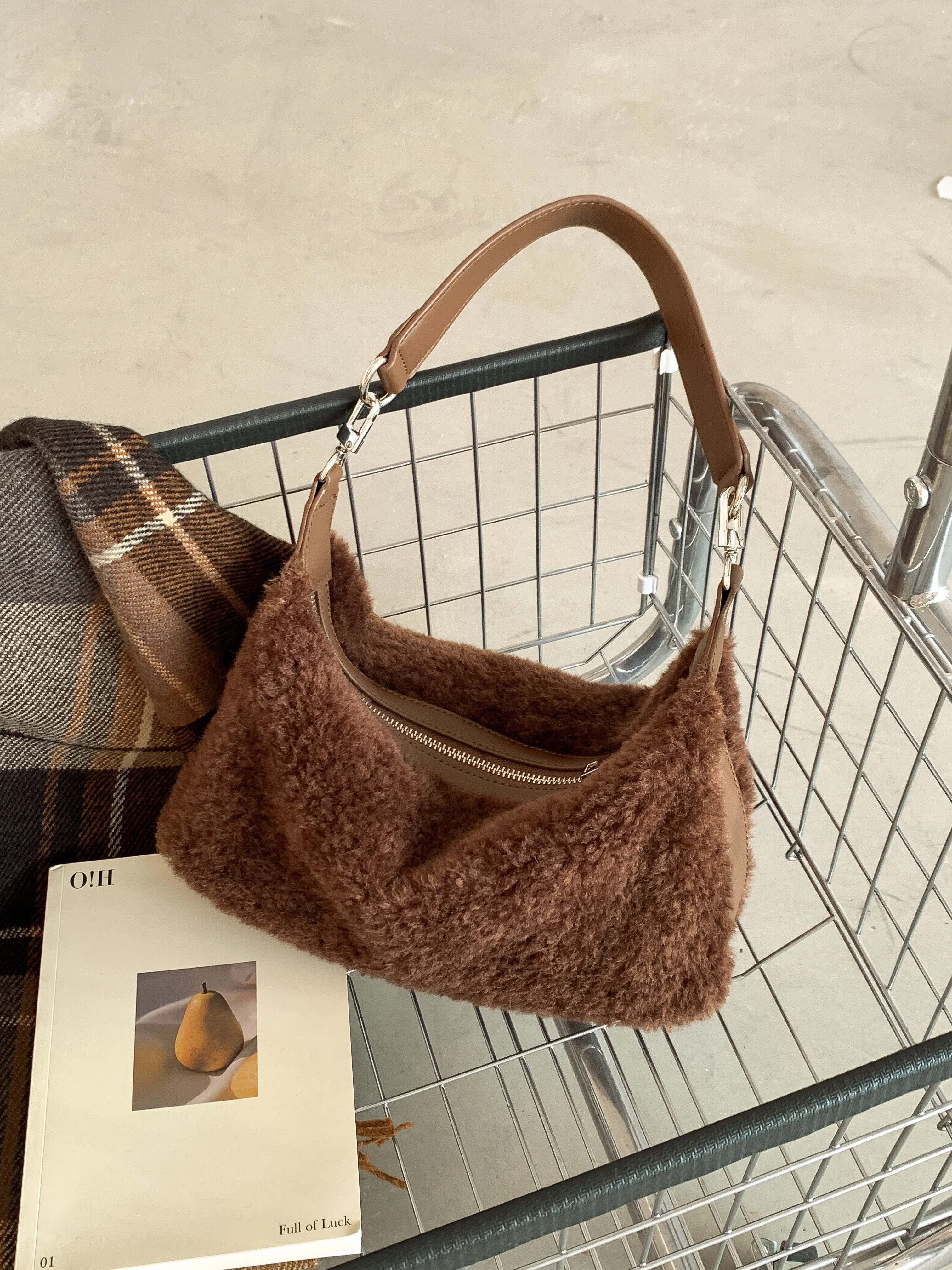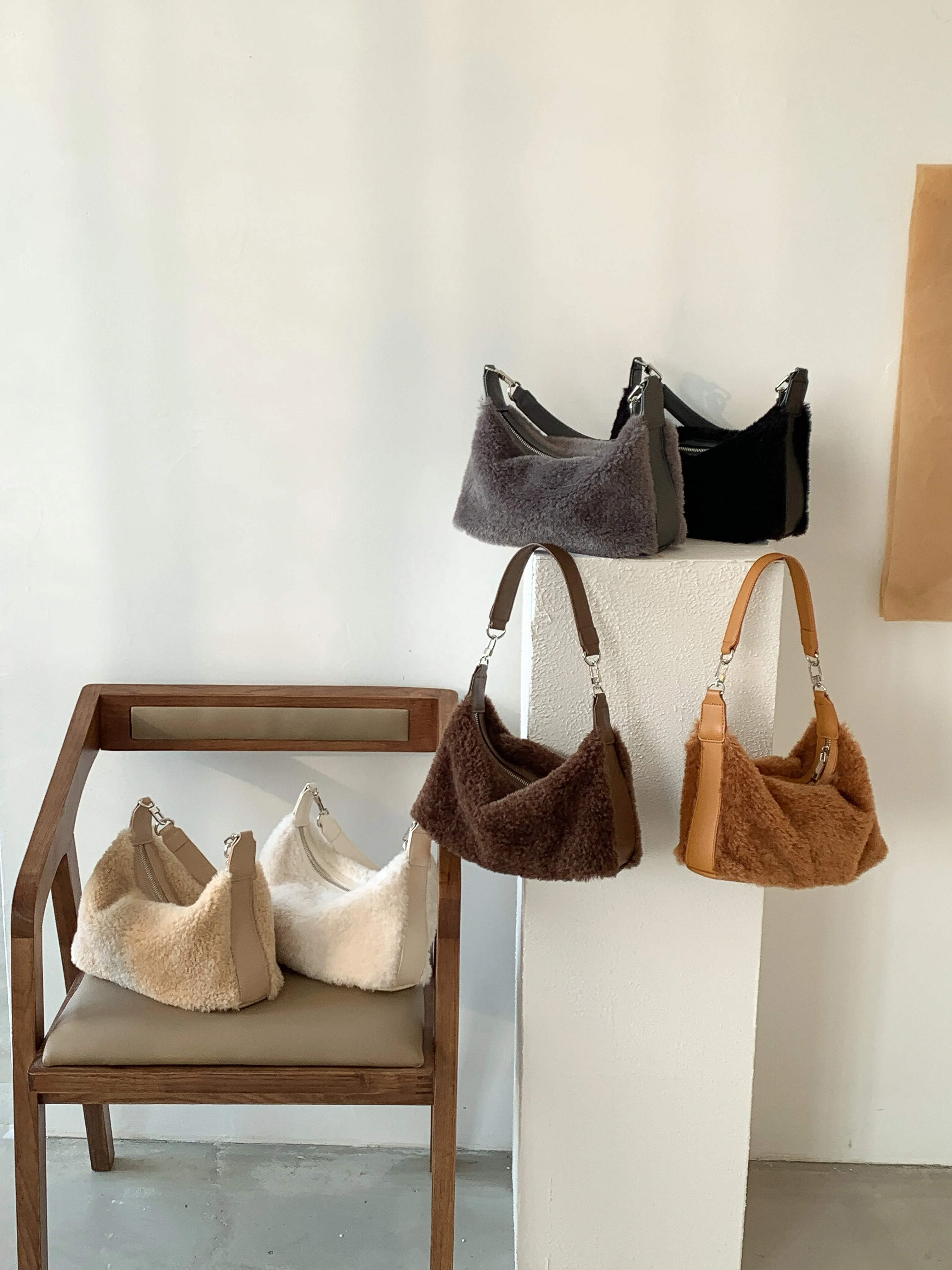Wholesale Popular Design HandBag Fashion Plain Hand Bags Soft Plush Shoulder Bag