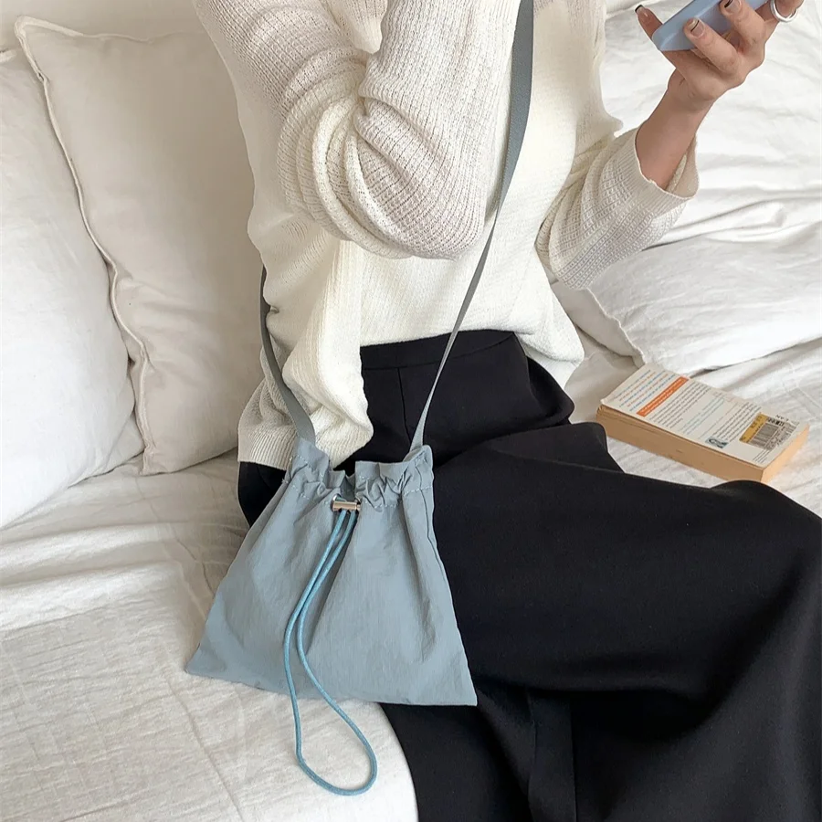 Fashion Small Nylon Cross Body Bag Women Drawstring Fold Soft Mini Shoulder Bag for Mobile Phone Bags Crossbody