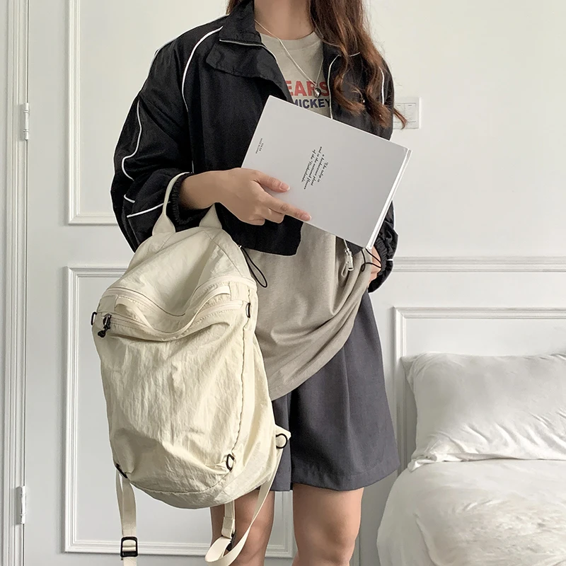 Korean Nylon Lightweight Backpack Goose Yellow Ribbon Shoulder Strap Lady Backpacks Large Capacity Student Fashion Schoolbag