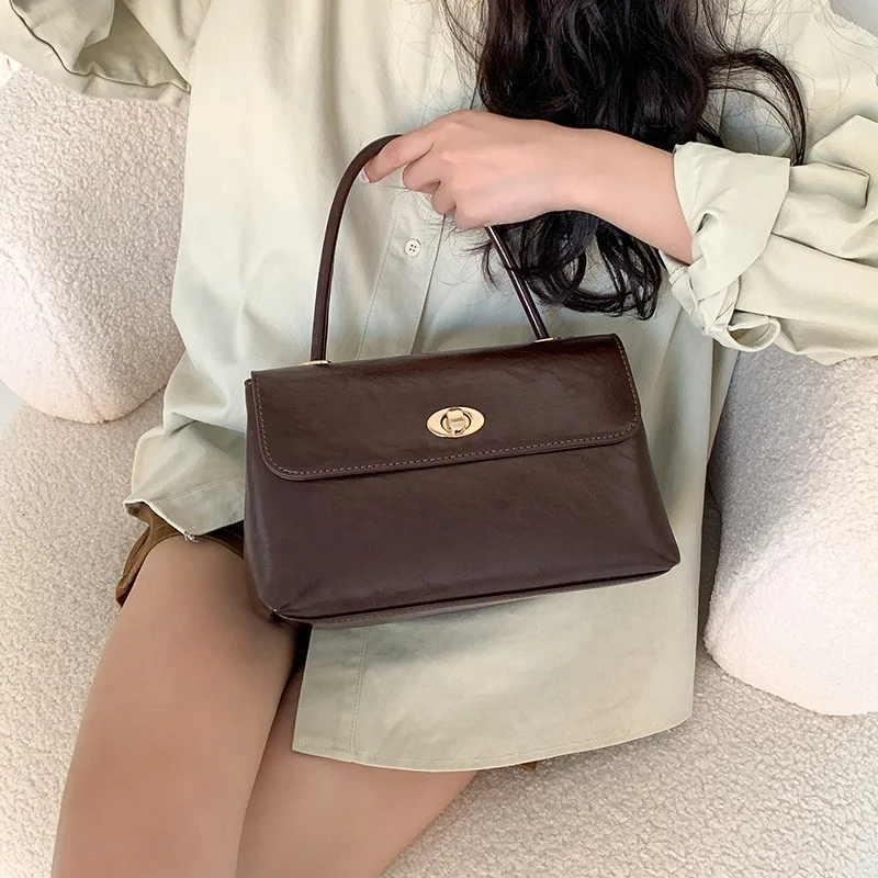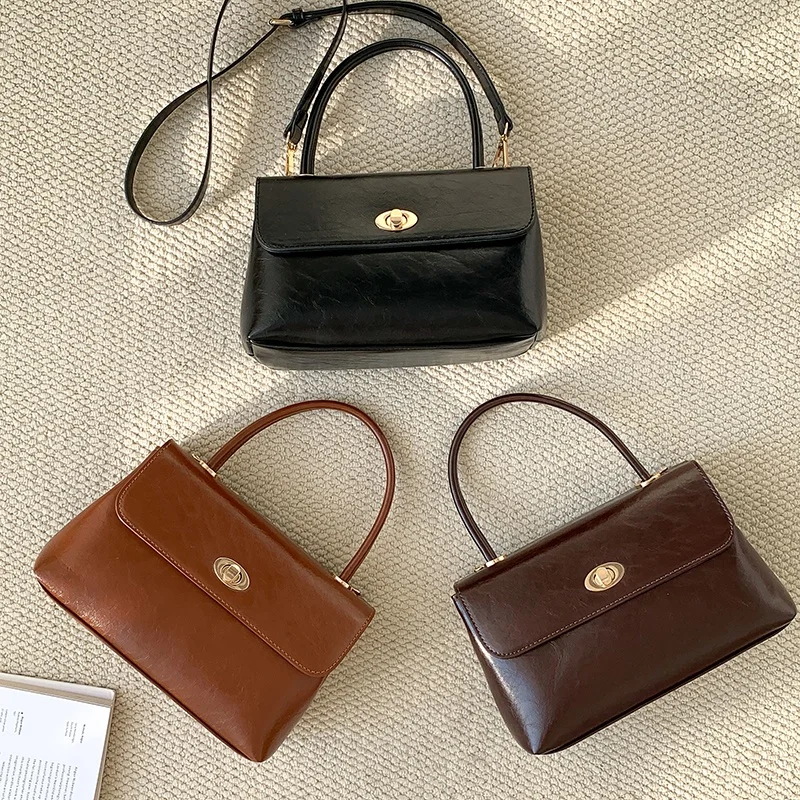 Autumn 2026 Korea Trend Crossbody Bags Glossy Leather Briefcase Young Trend Lock Flap Handbag for Women