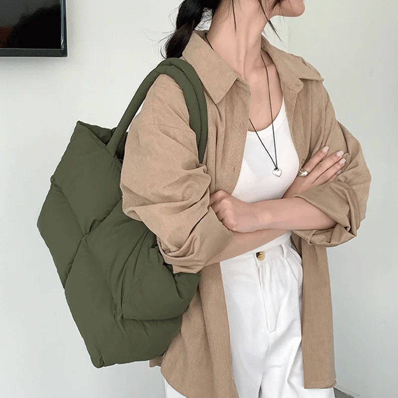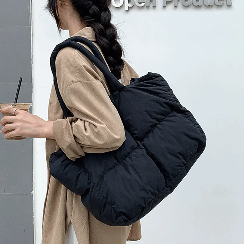 Trendy New High Quality Puff Shoulder Bags Women Casual Space Cotton Tote Bag Down Nylon Puff Hand Bag