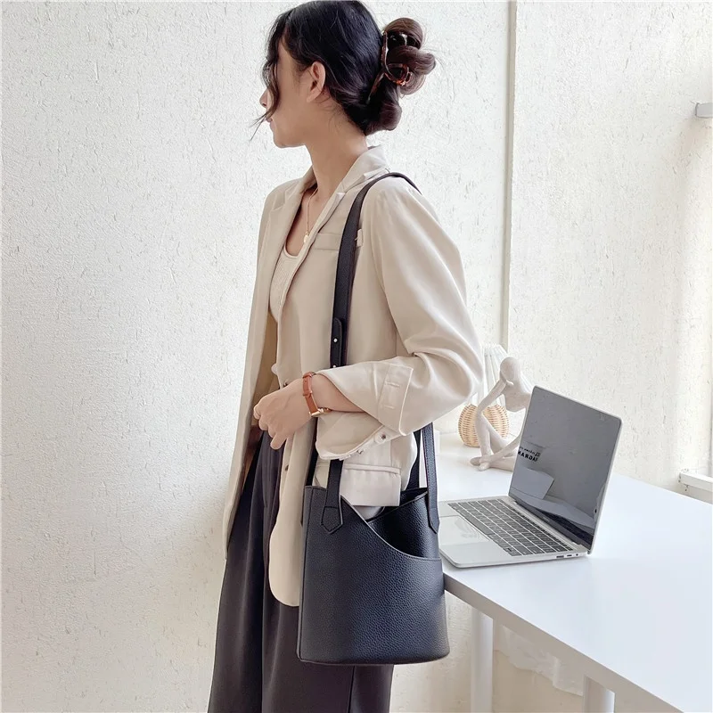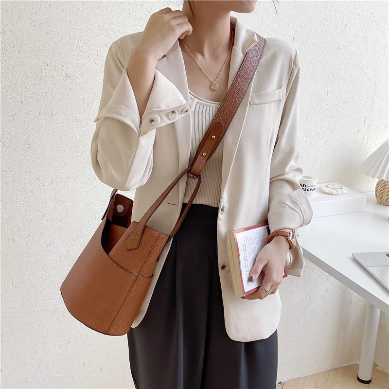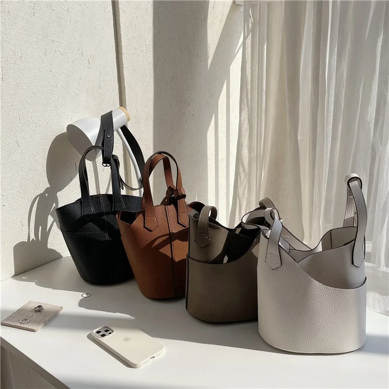 Designer Vintage Popular Ladies Women Crossbody Shoulder Hand Bags Fashion Casual Large Capacity Cowhide Leather Bucket Bag 2026