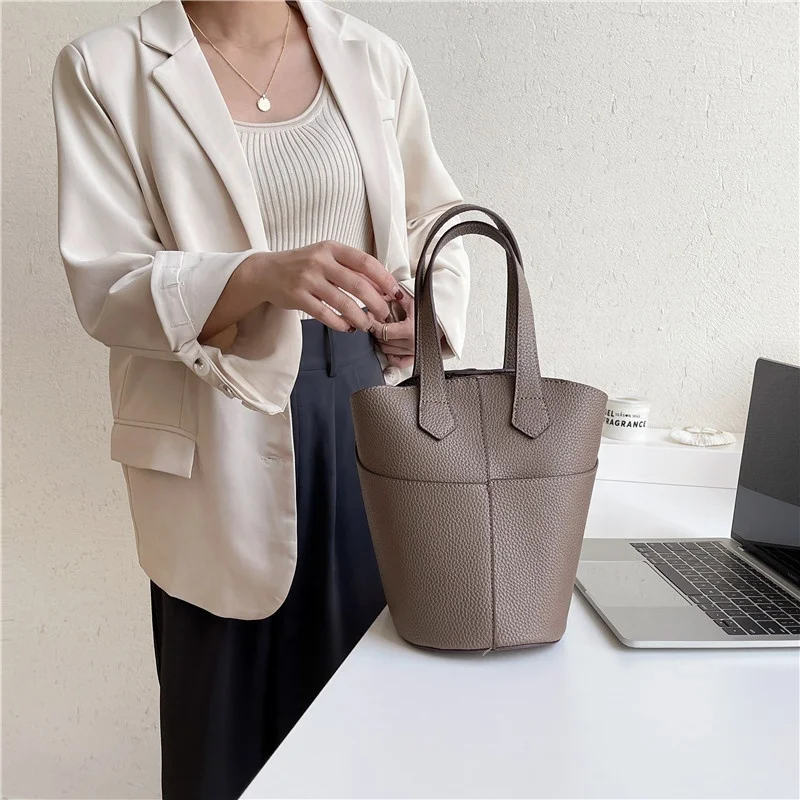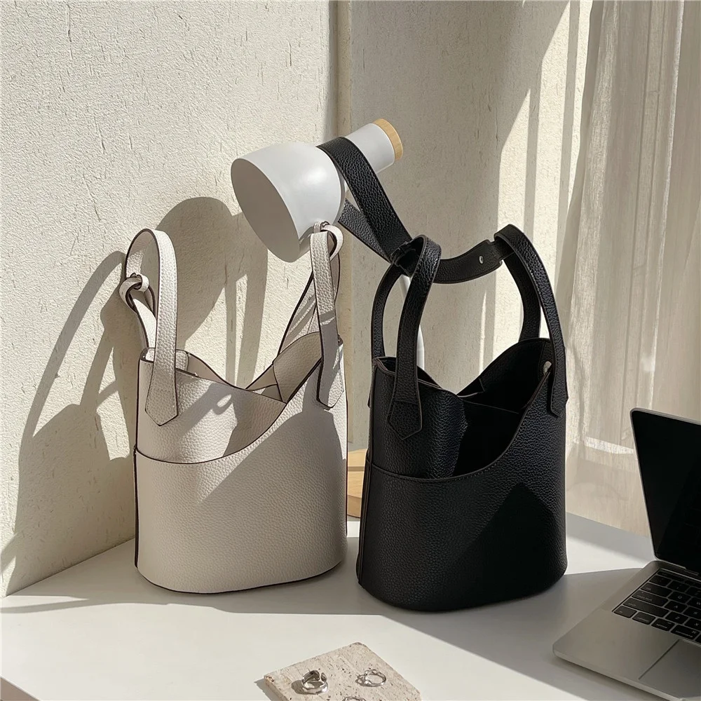 Women's Handbag Basket Shoulder Tote Crossbody Messenger Bag Ladies Large Capacity Fashion Splicing Leather Bucket Bag