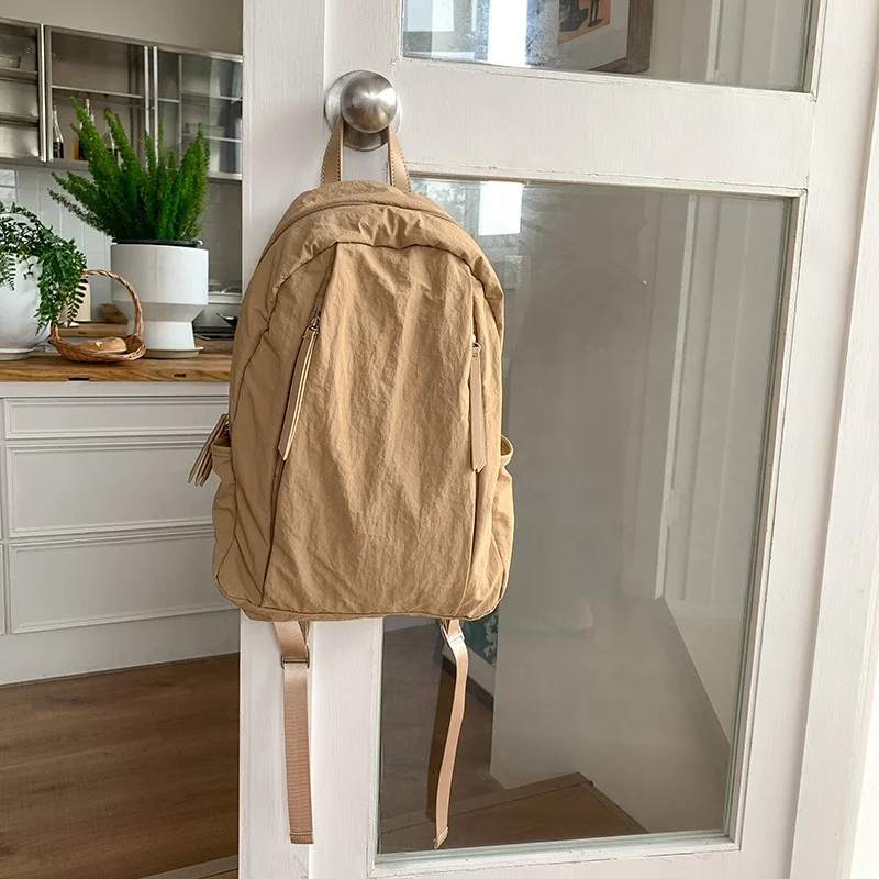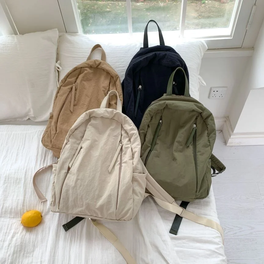 Logo 2026 Hot Cream Student Lightweight Simple Fashion Backpacks Large Capacity Nylon Schoolbag Backpack