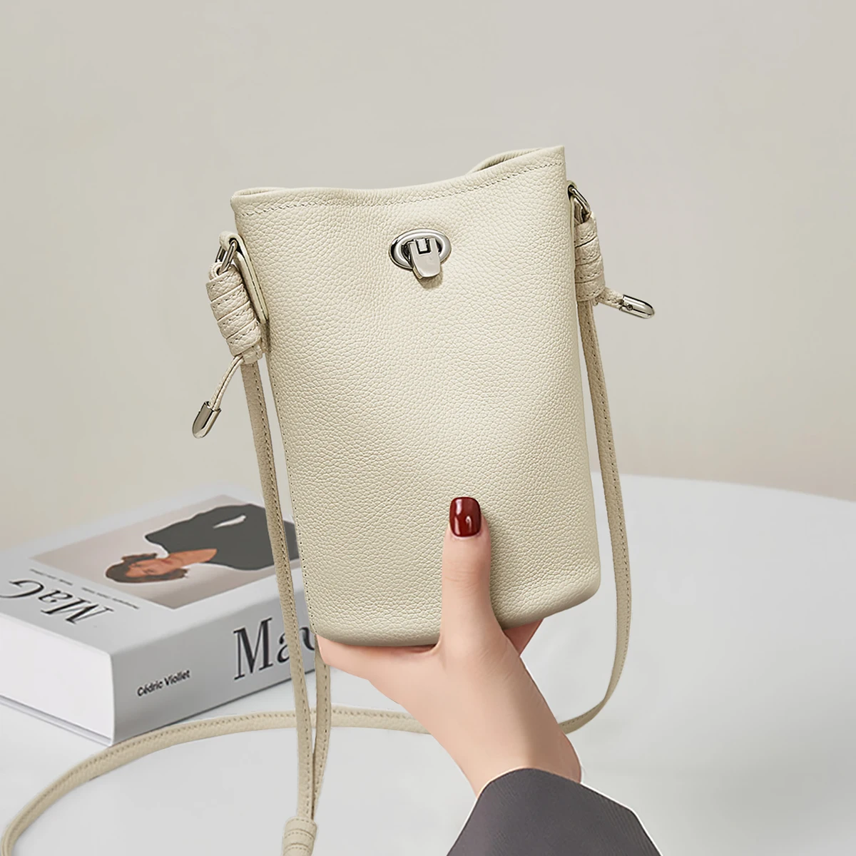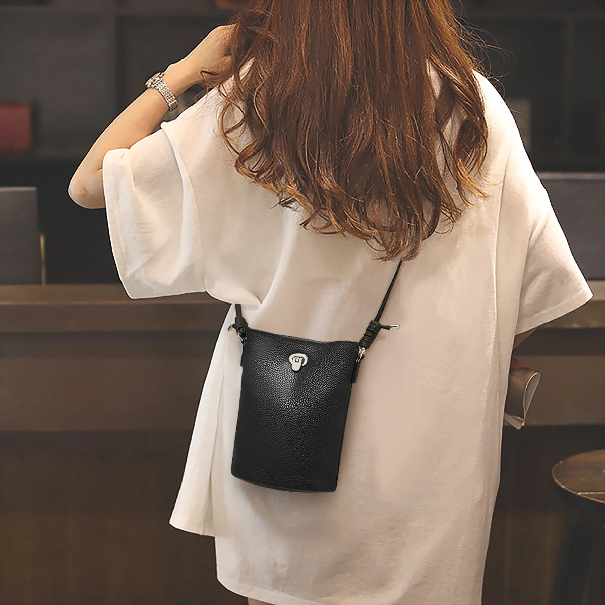 Women's 2026 New Slanted Shoulder Bag Trendy Girl Cowhide Leather Small Mini Phone Women's Bucket Crossbody Bag Wholesale
