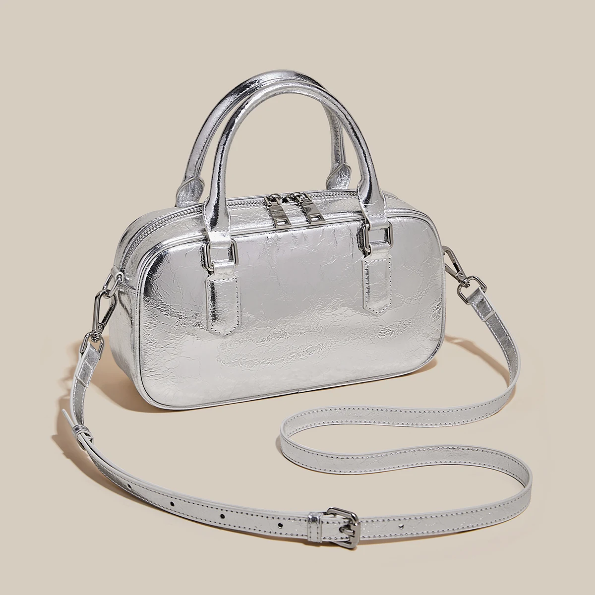 Manufacturer Luxury Cowhide Leather Shoulder Bag Customized Fashion Women's Bag Own Brand Silver Ladies Handbag Crossbody Bag