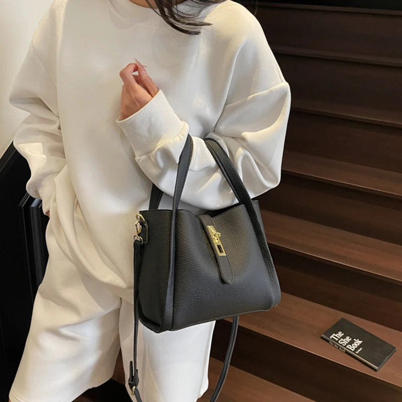 Designer Vintage Popular Ladies Women Crossbody Shoulder Hand Bags Fashion Casual Large Capacity Cowhide Leather Bucket Bag 2026