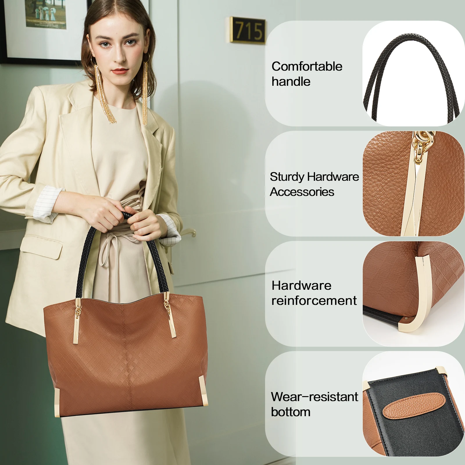 New Design 2026 Ladies Cowhide Genuine Leather Hand Bags Designer Black Handbag Luxury Big Laptop Tote Bag for Women Wholesale