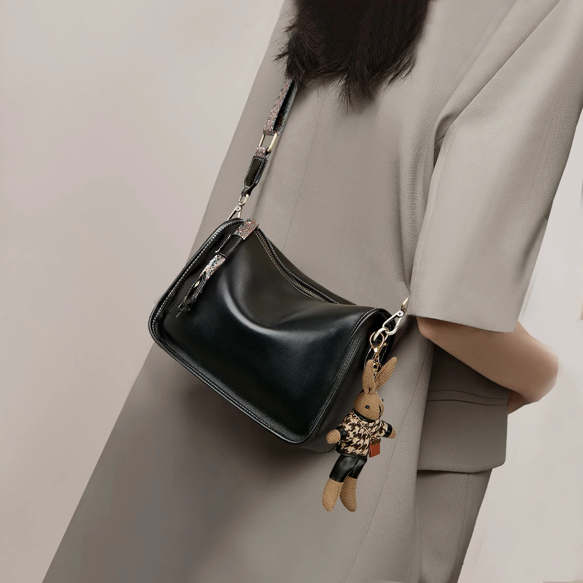 Customized 2026 Fashion Women's Bag High-quality Genuine Leather Wide Shoulder Strap One Shoulder Bag Crossbody Bag