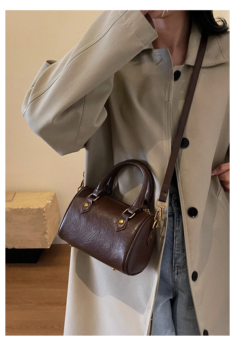 Designer Vintage Popular Ladies Women Crossbody Shoulder Hand Bags Fashion Casual Large Capacity Cowhide Leather Bucket Bag 2026