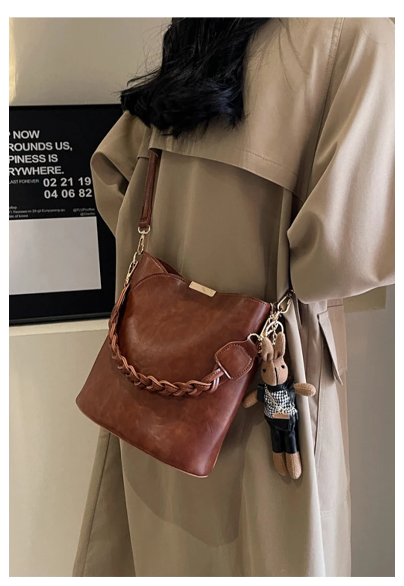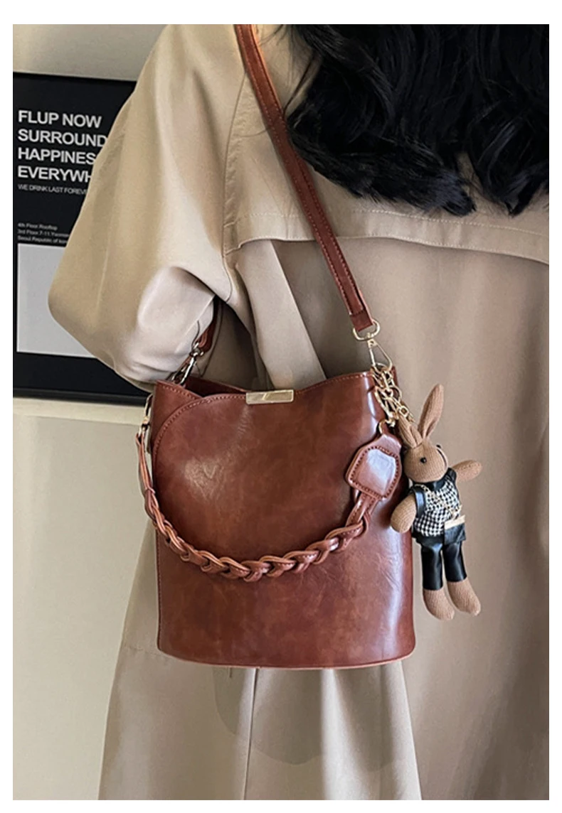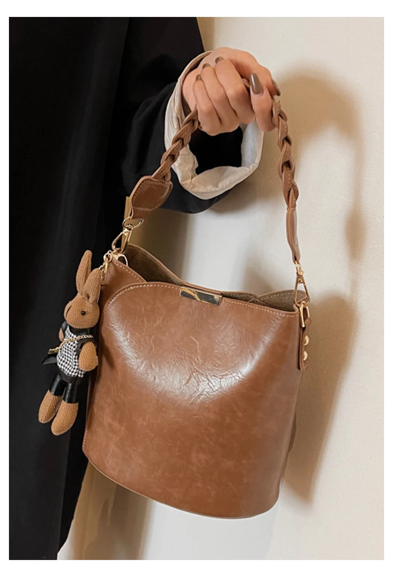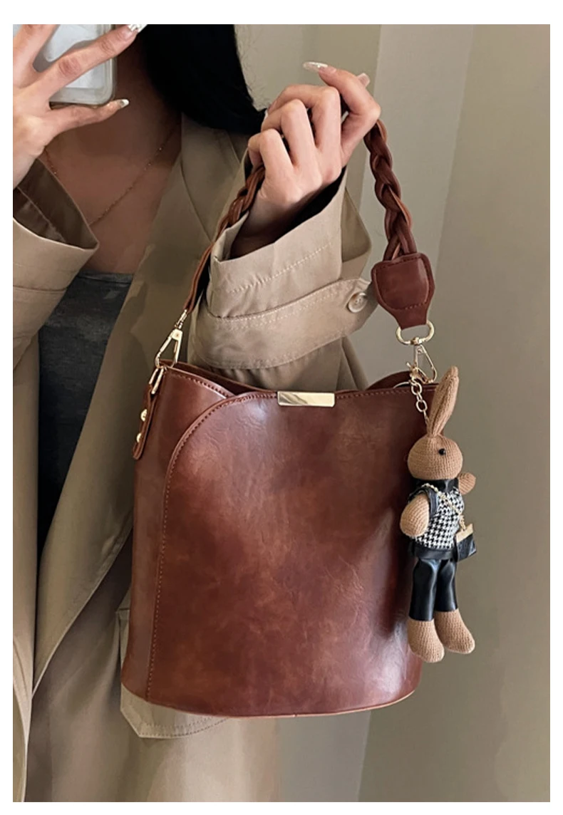 Designer Vintage Popular Ladies Women Crossbody Shoulder Hand Bags Fashion Casual Large Capacity Cowhide Leather Bucket Bag 2026