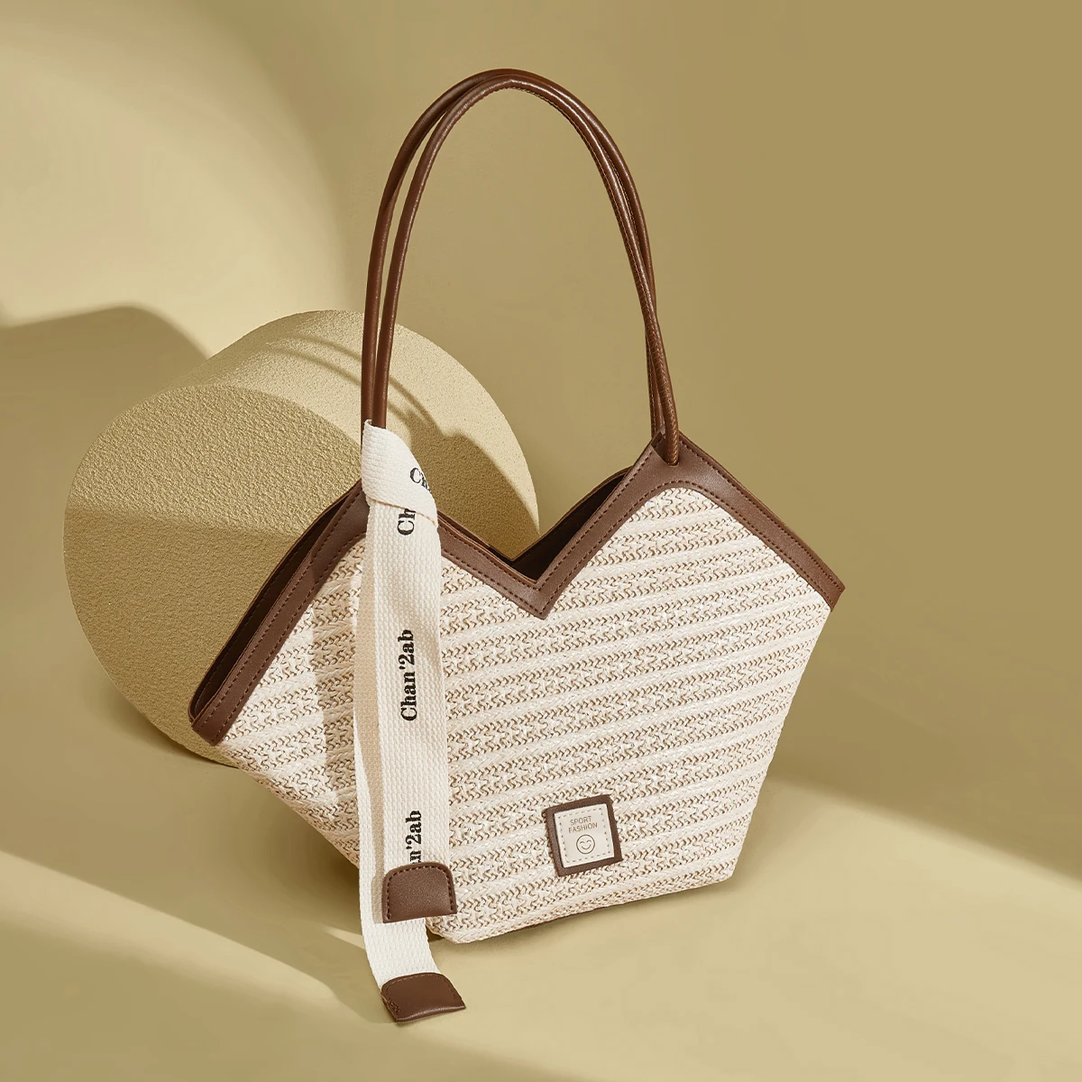Customized new erxquisite design Handmade woven handbag large capacity woven shoulder bag women travel beach handbag bag