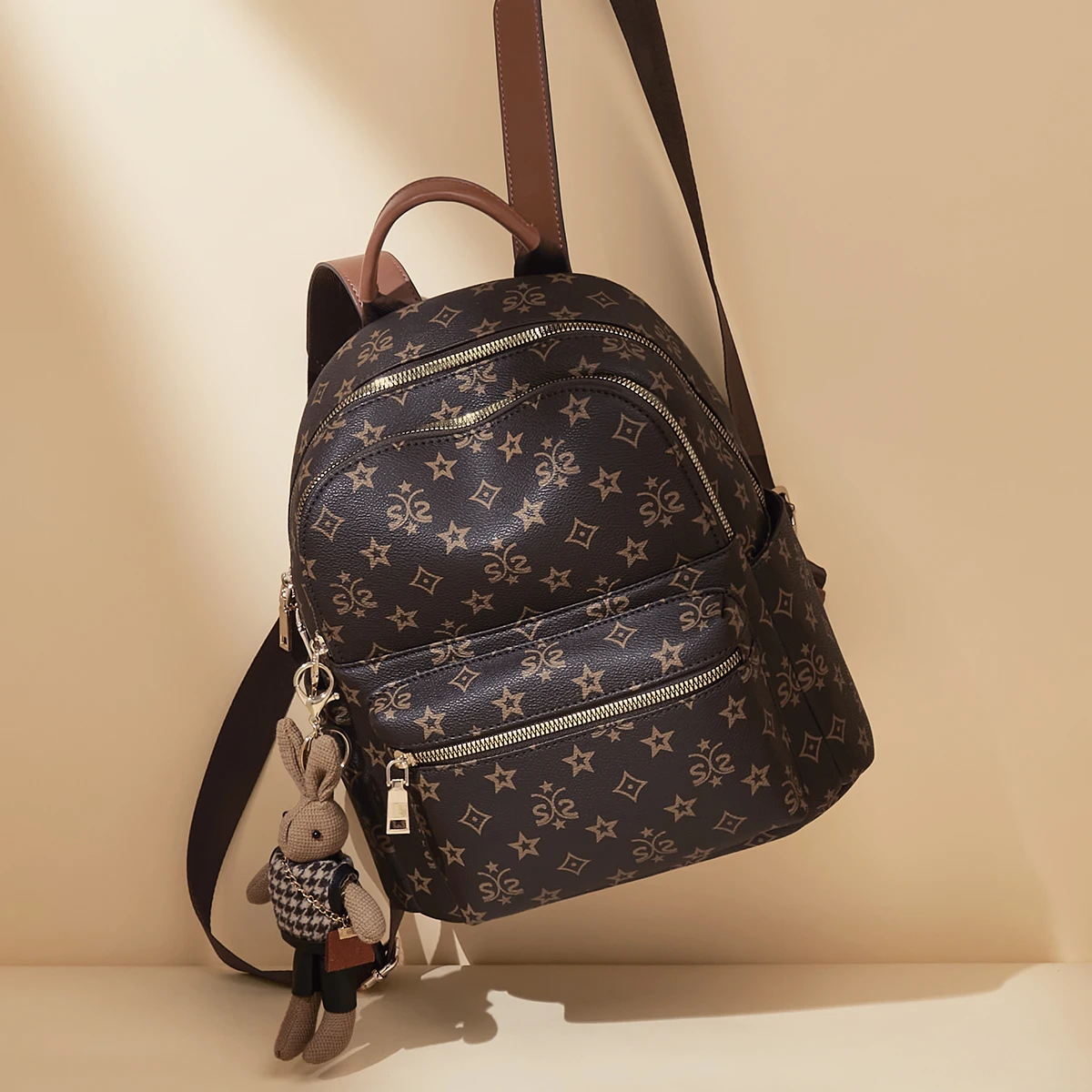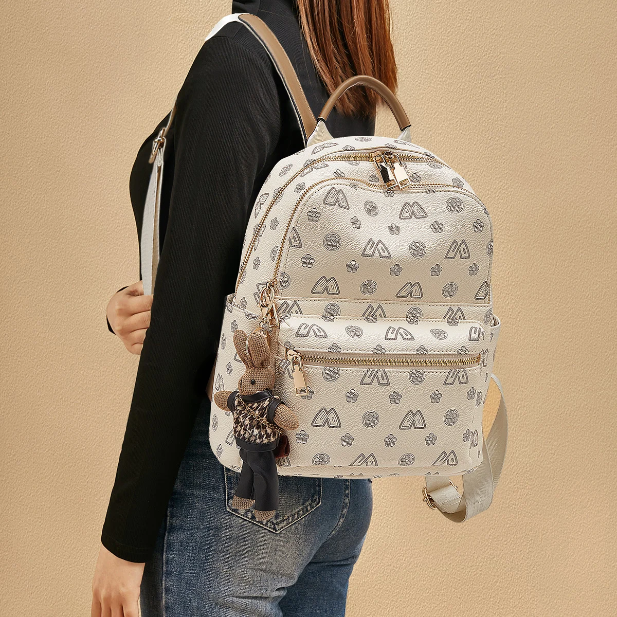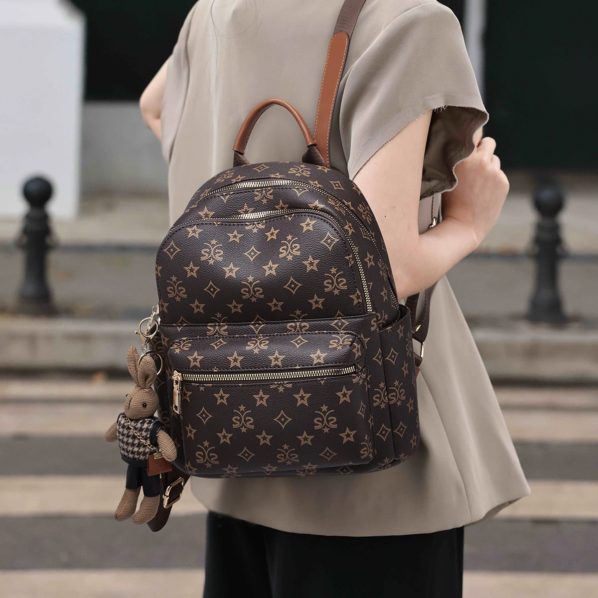 2026 New PU PVC leather backpack fashion trend European and American letter printing designer brand backpack women's bag factory