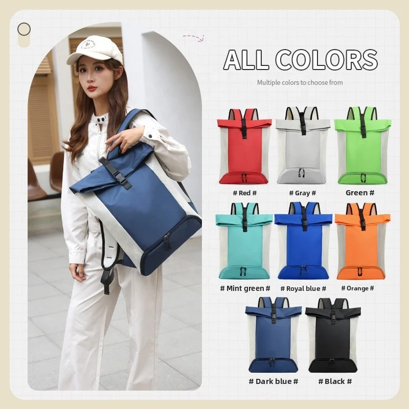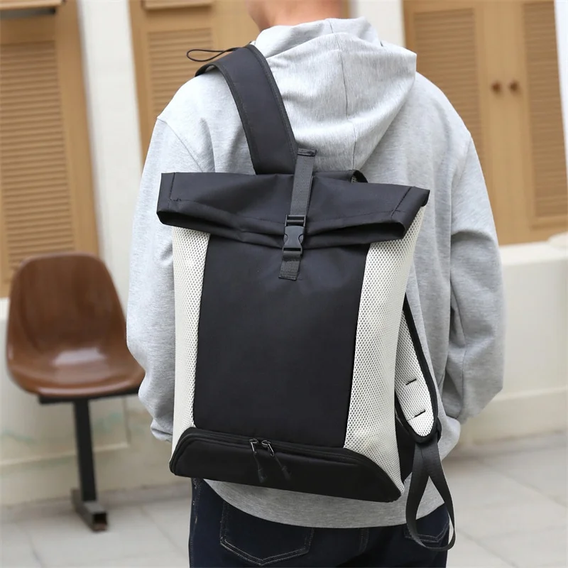 Roll Top Casual Sports Basketball Bag Large Capacity Fashionable Design for Commuting Business Travel Fitness Daypack Backpack