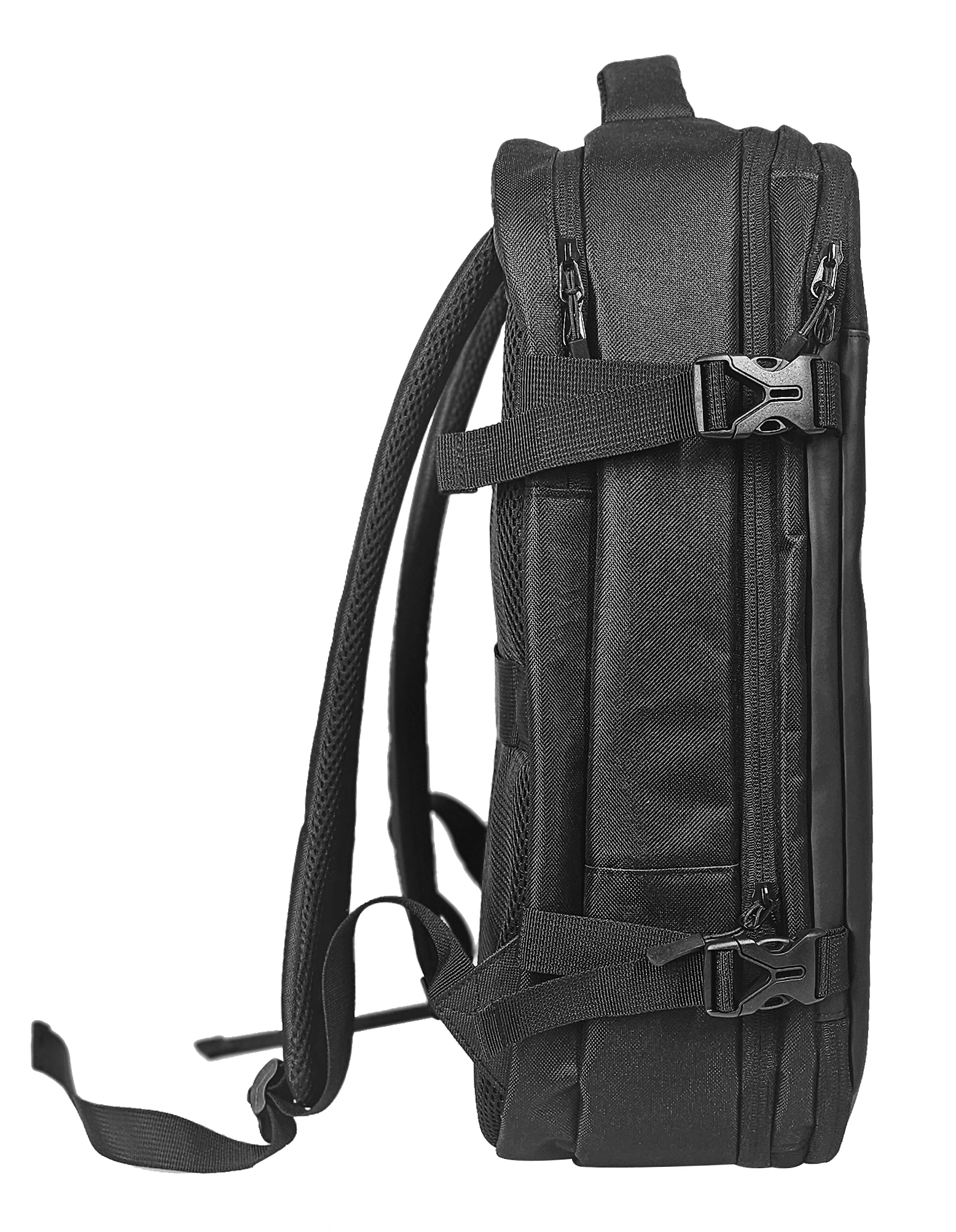 600D Vinyl Expandable Backpack, 180° Open Compartment, Vacuum Storage & Laptop Pocket with Tie Rod Strap