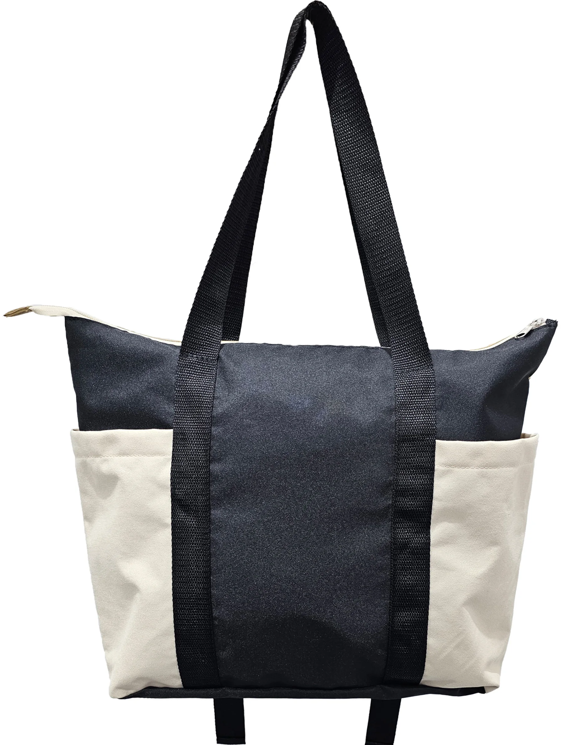 Recycle Large Size Customised Polyester Canvas Tote Bags with a Front Pocket Custom Logo OEM Brand Letter Pattern