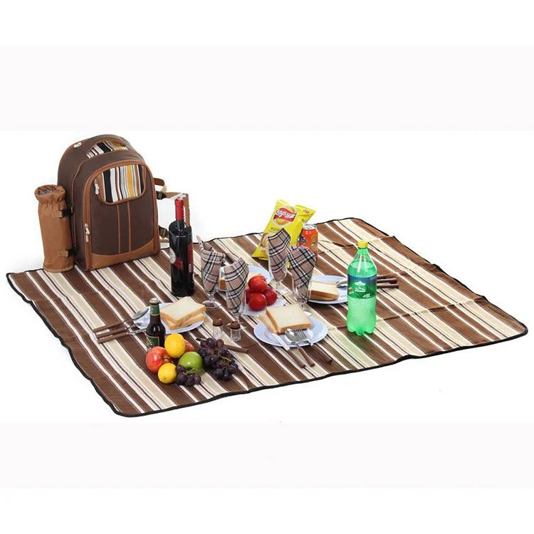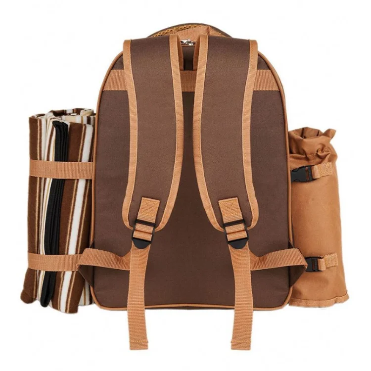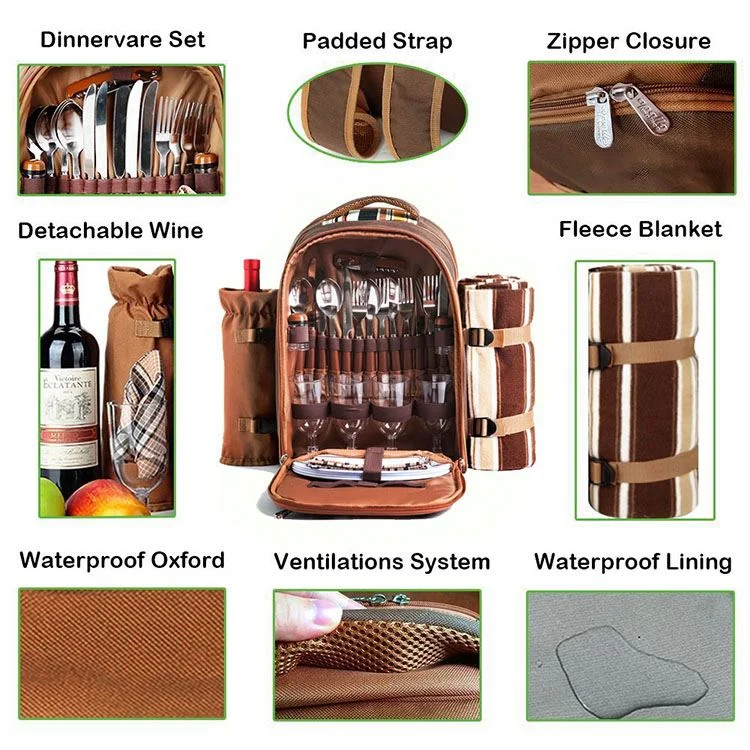 Outdoors 4 Person Cooler Compartment Detachable Bottle Holder Fleece Blanket Plates and Cutlery Set Picnic Backpack Bag