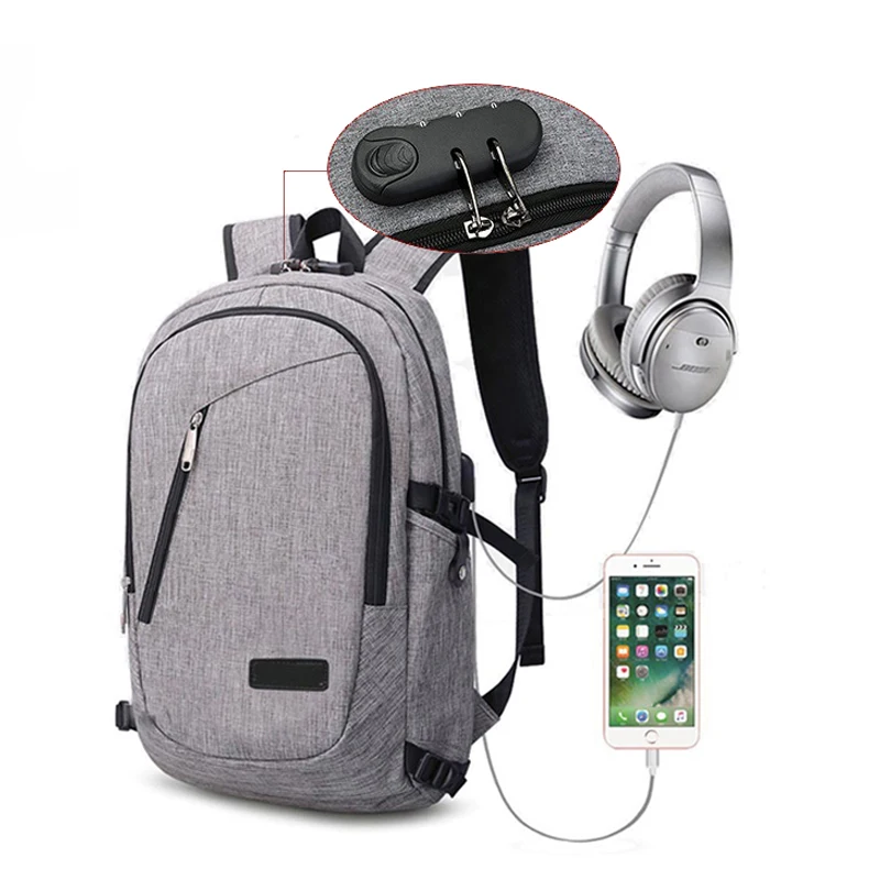 Dual Durable Lightweight Travel-friendly Youth Fashion Soft Office Computer Backpack with USB Port Waterproof Zippered Closure