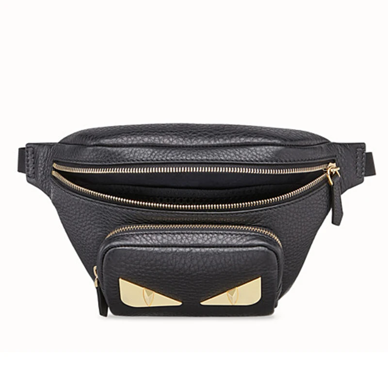 OEM Logo Vegan Leather Black Men's Designer Large Fanny Pack Luxury Bum Waist Belt Bag for Men
