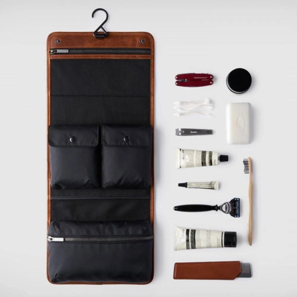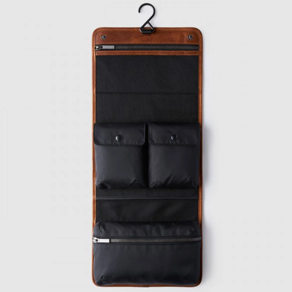 Custom Logo Vegan Leather Men's Travel Hanging Dopp Kit Toiletry Wash Bag for Men