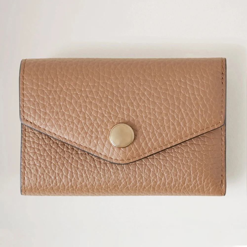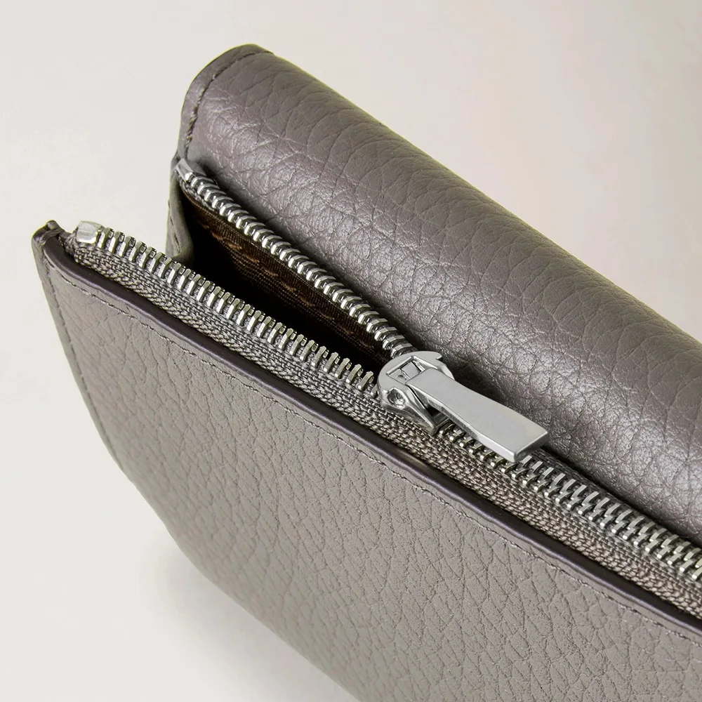 Custom Logo Pebble Leather Ladies Grey Trifold Short Card Coin Wallet Purse for Women