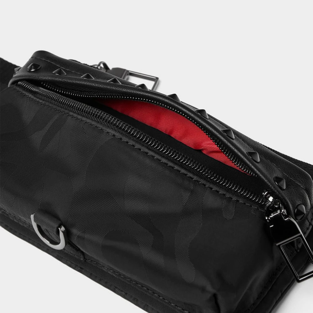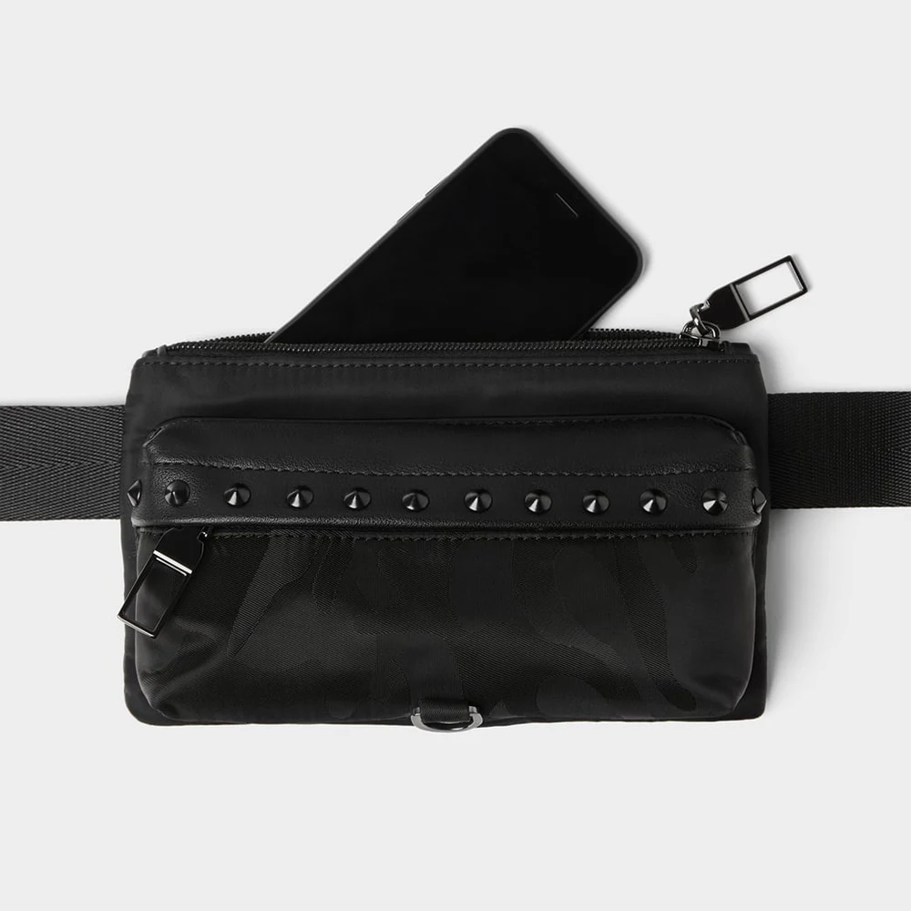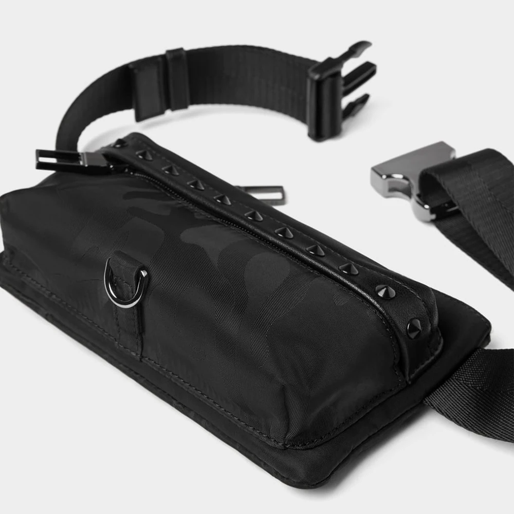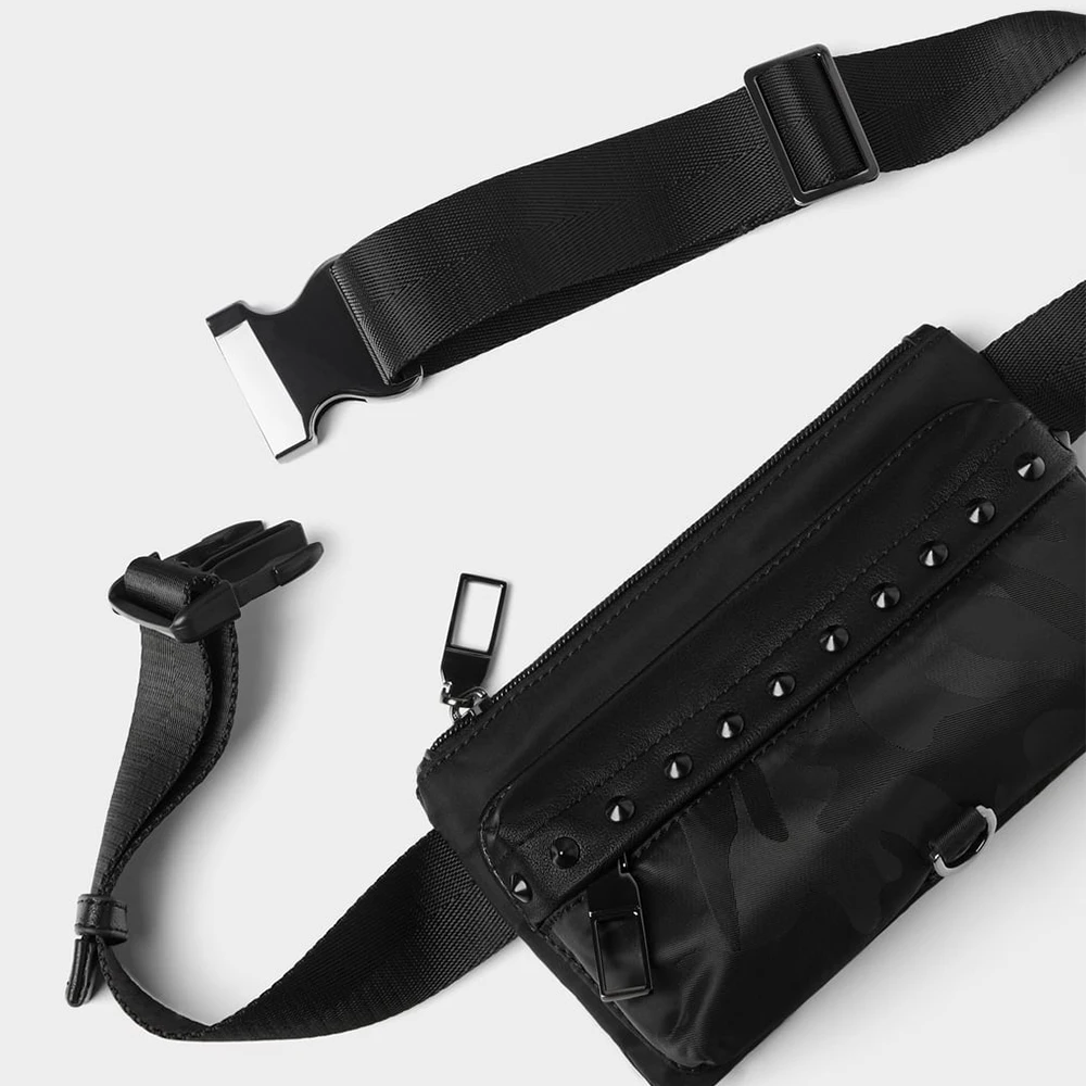 Custom Black Camo Nylon Men's Studed Bumbag Fanny Pack Fashion Waist Pouch Belt Bag for Men