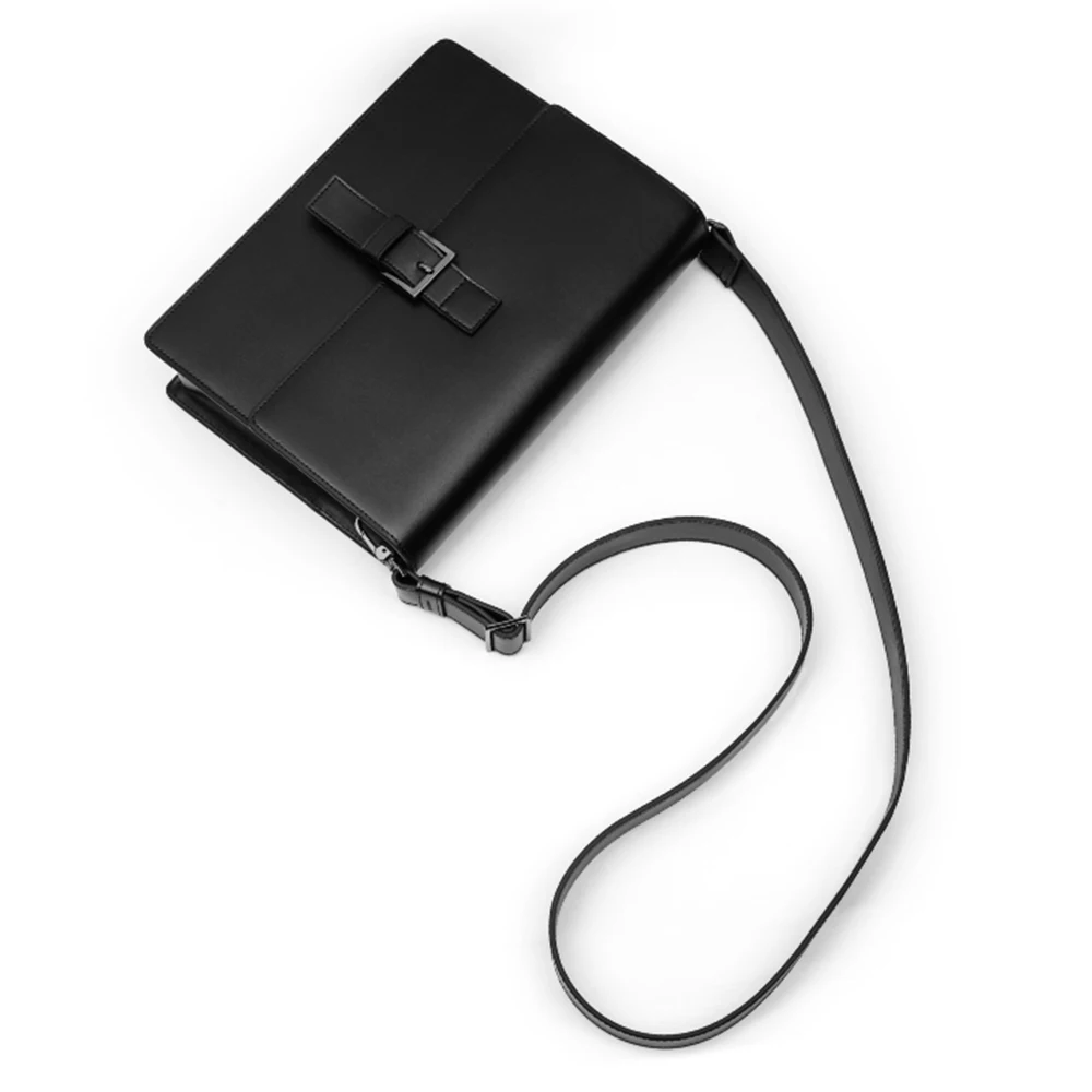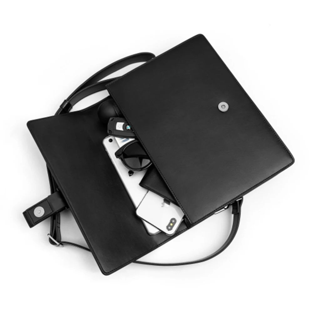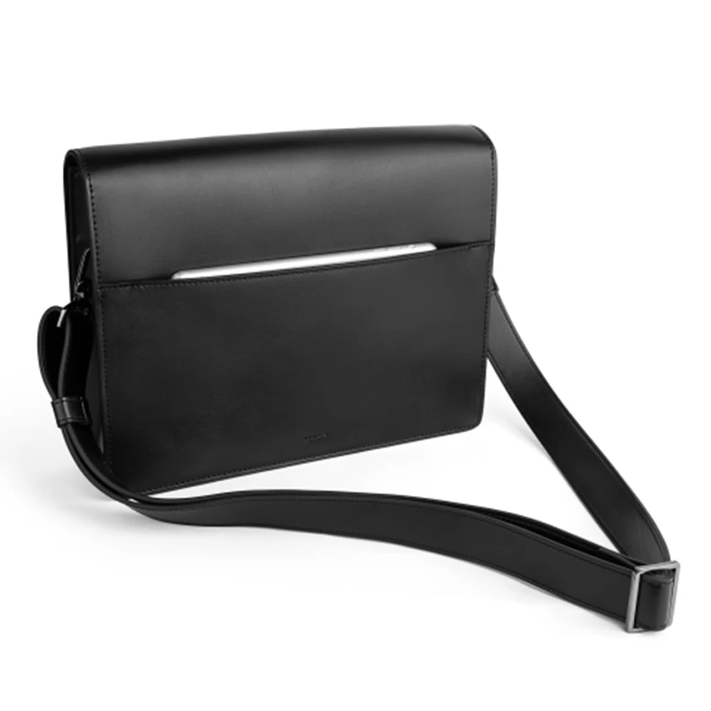 Custom Logo PU Smooth Leather Black Men's Crossbody Pack Shoulder Messenger Bag for Men