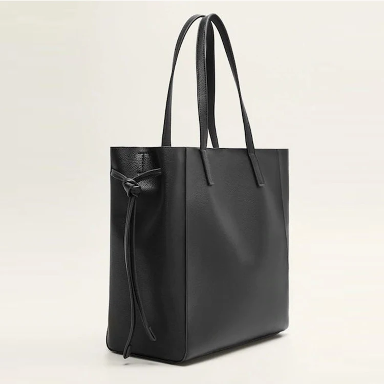 Custom Classical Black Ladies Leather Tote Bag Shoulder Shopper Handbag Purse for Women