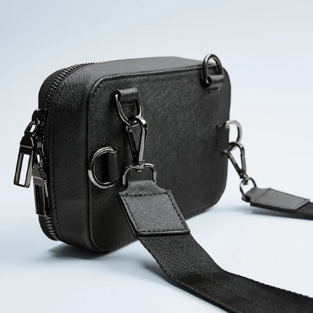 Personal Logo Saffinao Leather Mens Mini Crossbody Pack Black Shoulder Messenger Bag for Men