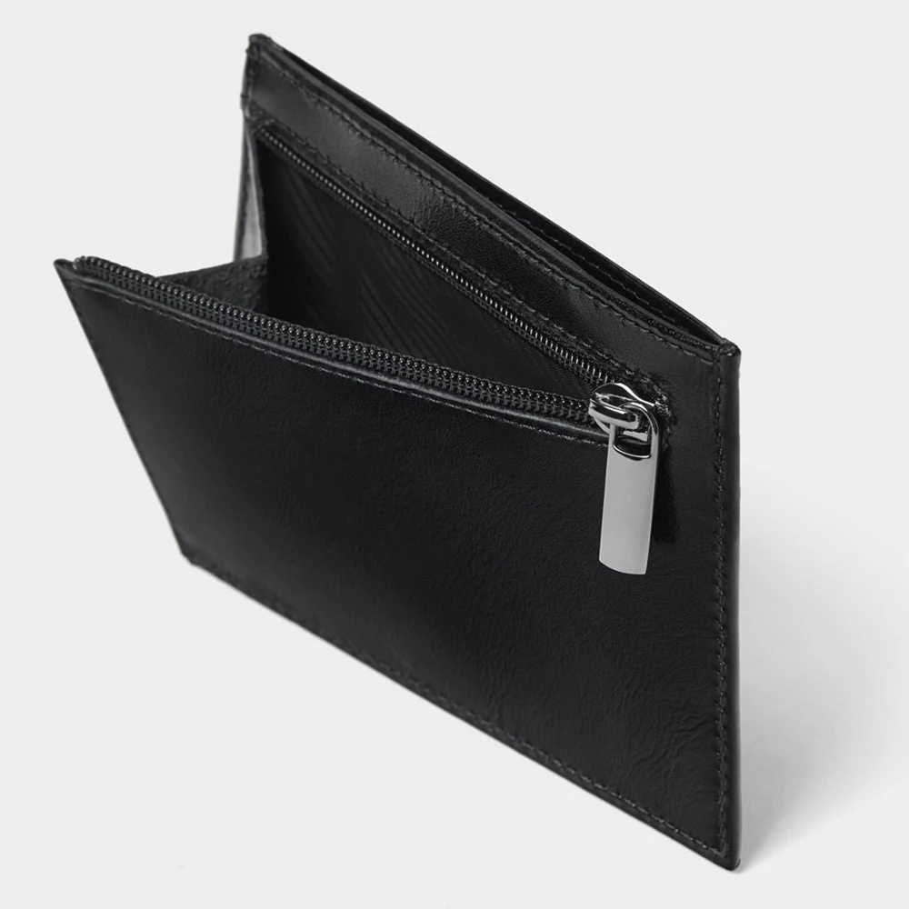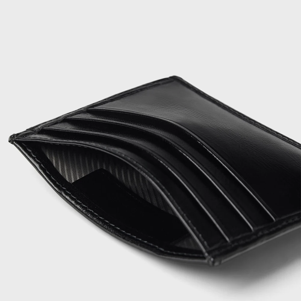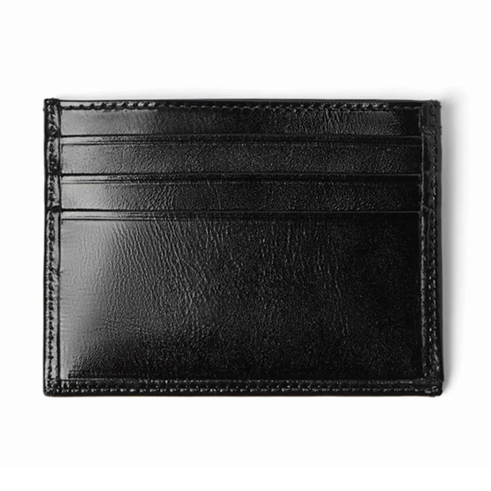 Custom Logo Smooth Vegan Leather Men's Credit Cardholder Black Men Slim Card Holder Case