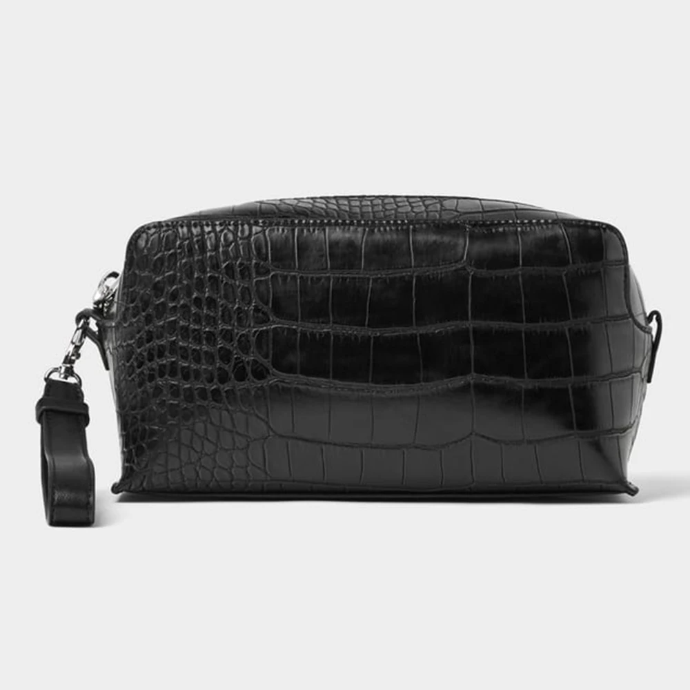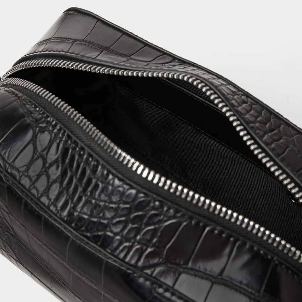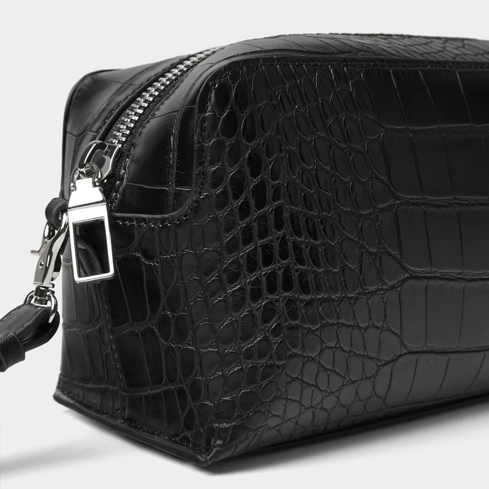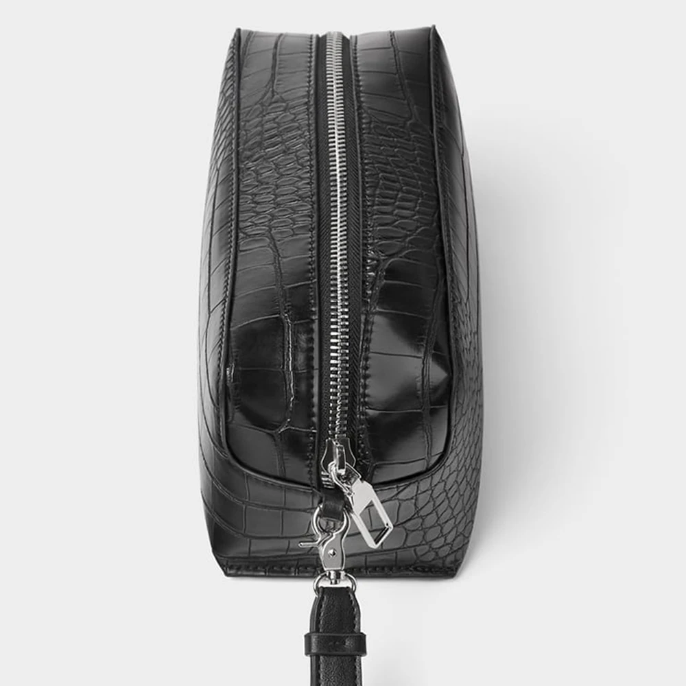 Custom Logo Croc Leather Men's Toiletry Wash Bag Black Travel Cosmetic Dopp Kit Pouch for Men