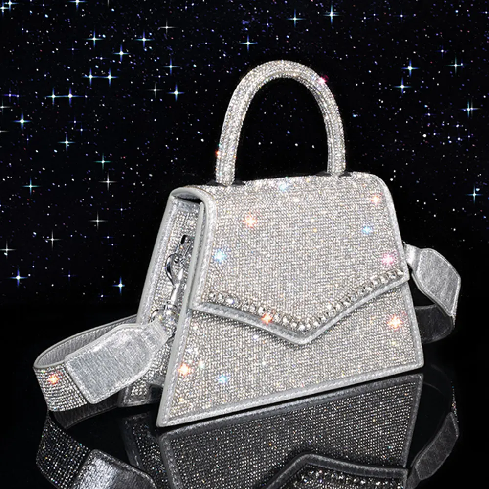 Wholesale Luxury Shiny Bling Rhinestone Trimming Diamond Ladies Party Handbag Purse for Women