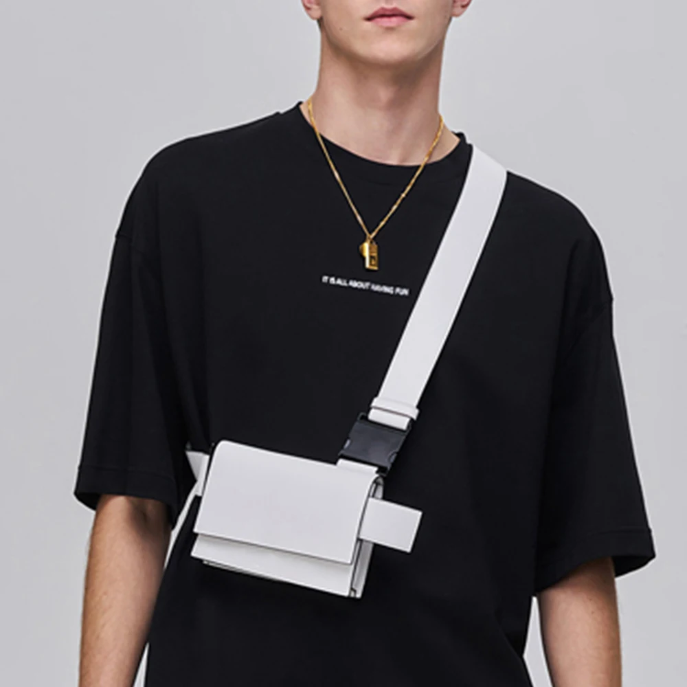 Custom Logo Leather White Fashion Mens Small Harness Chest Pack Crossbody Shoulder Bag for Men