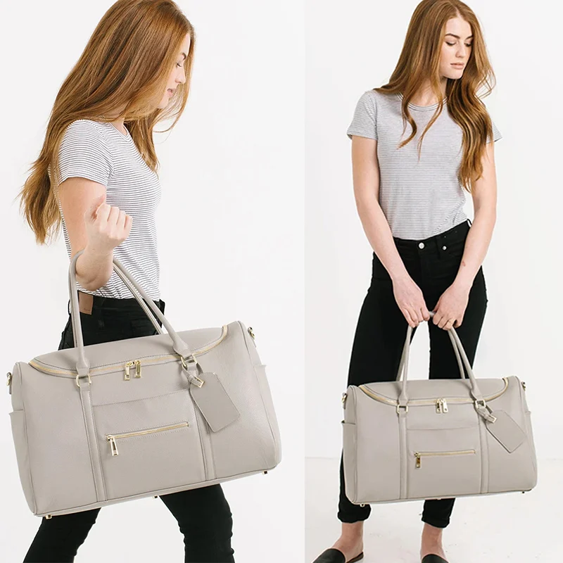 Custom Logo PU Faux Leather Ladies Travel Duffel Diaper Weekender Overnight Bag for Women