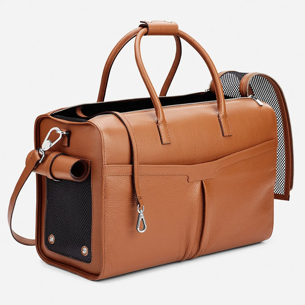 Custom Logo Pebble Leather Luxury Ladies Travel Pet Dog Cat Carrier Duffle Bag for Women