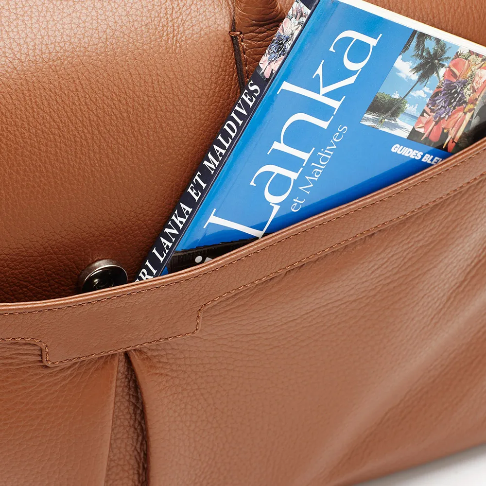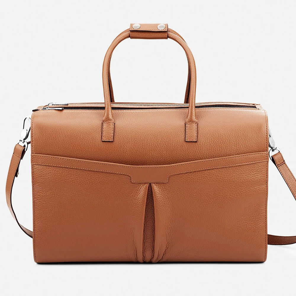 Custom Logo Pebble Leather Luxury Brown Women Travel Pet Dog Cat Carrier Weekender Bag