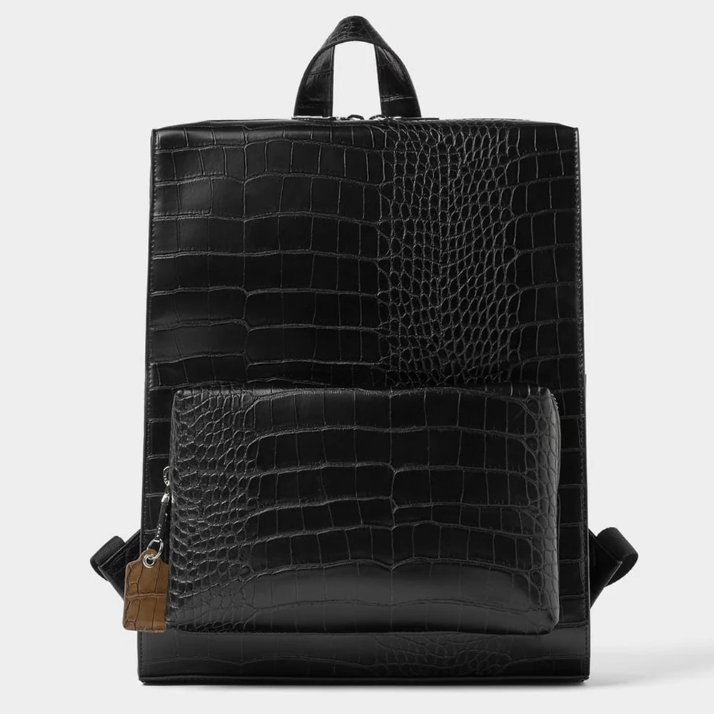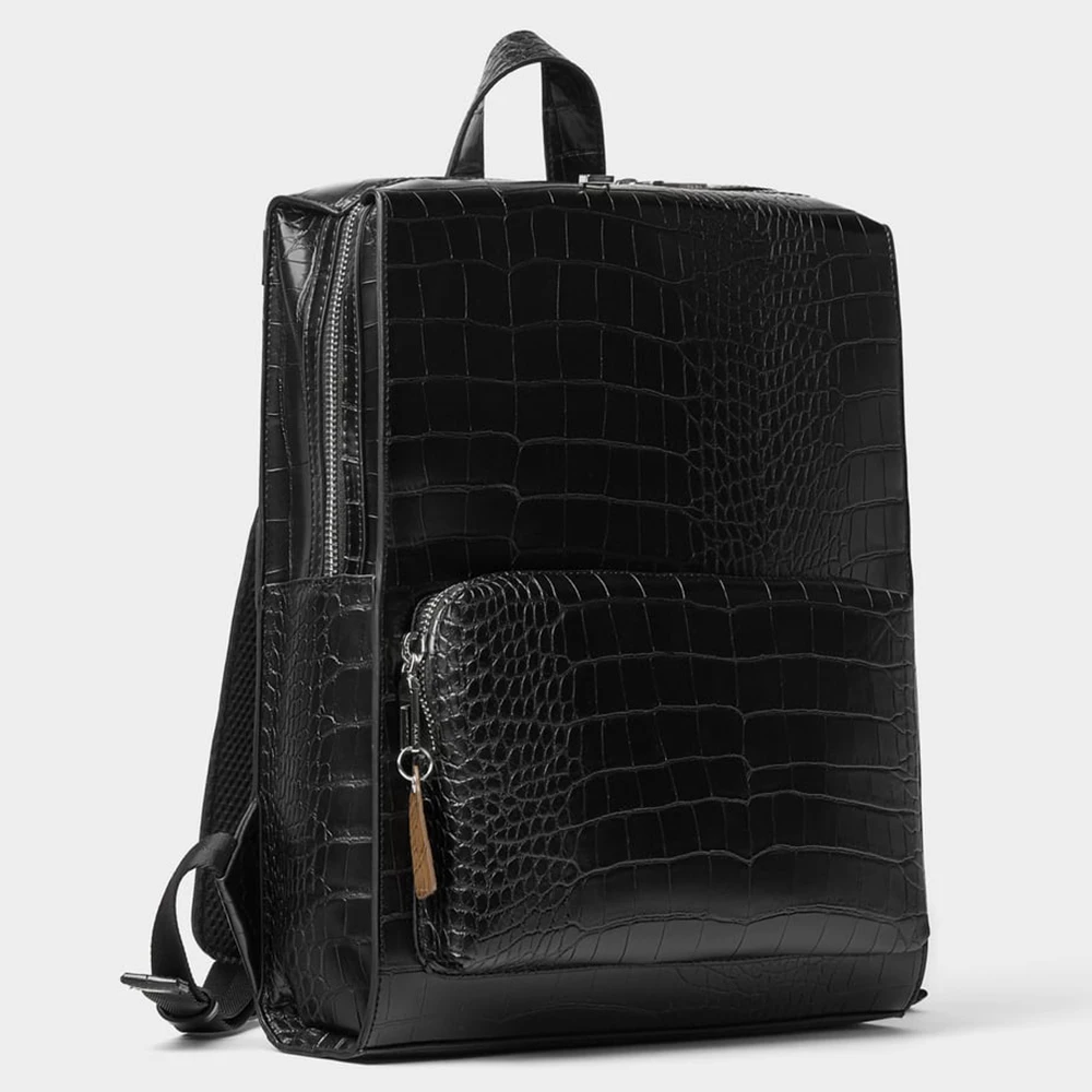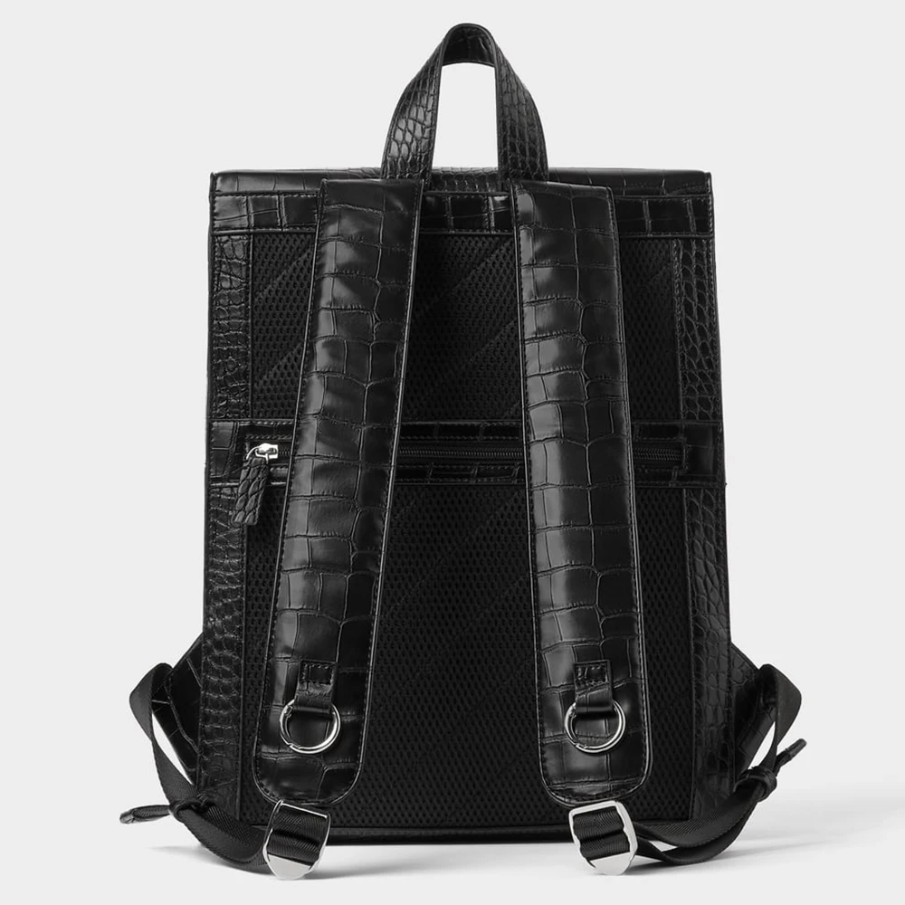 Custom Logo Croc Leather Black Mens School Laptop Backpack Stylish Book Bag Bagpack for Men