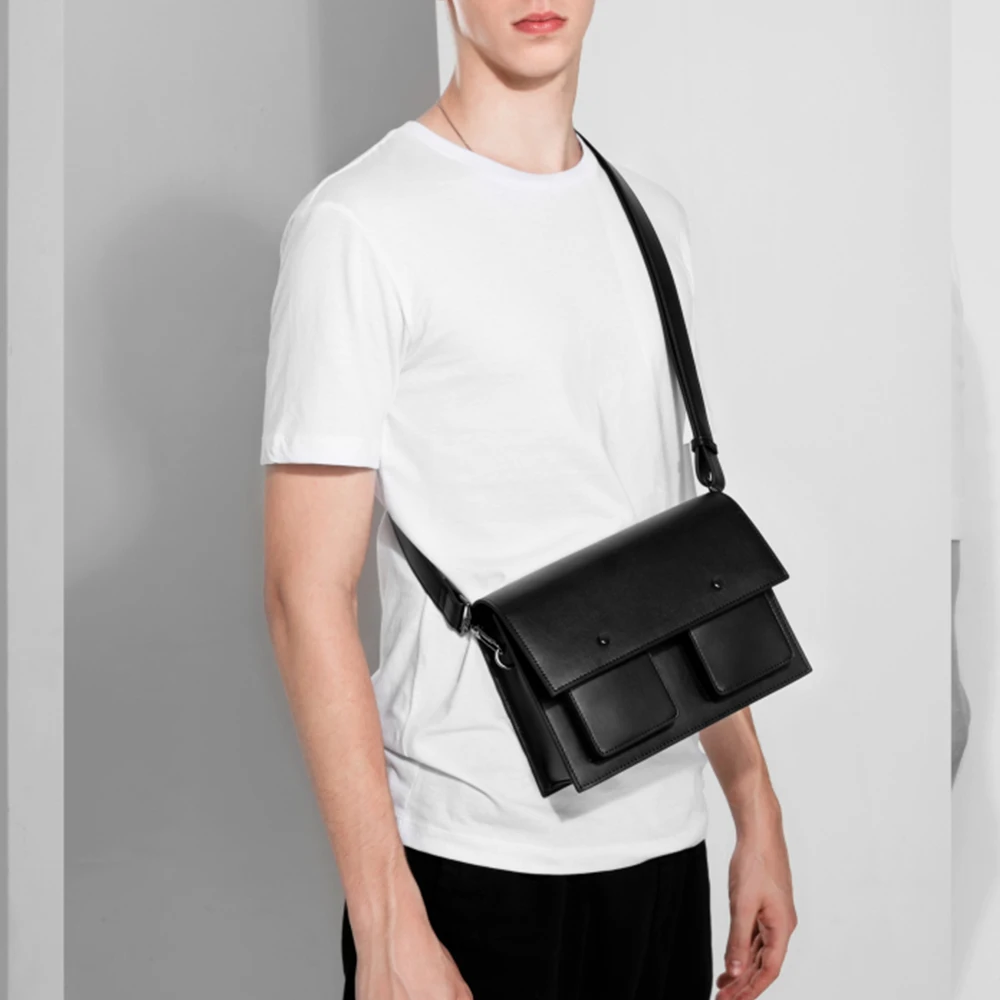 Custom Logo PU Leather Black Men's Crossbody Cross Body Pack Shoulder Messenger Bag for Men
