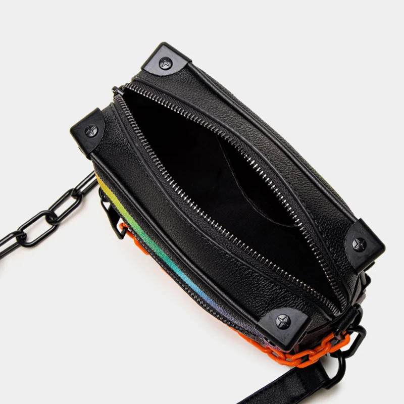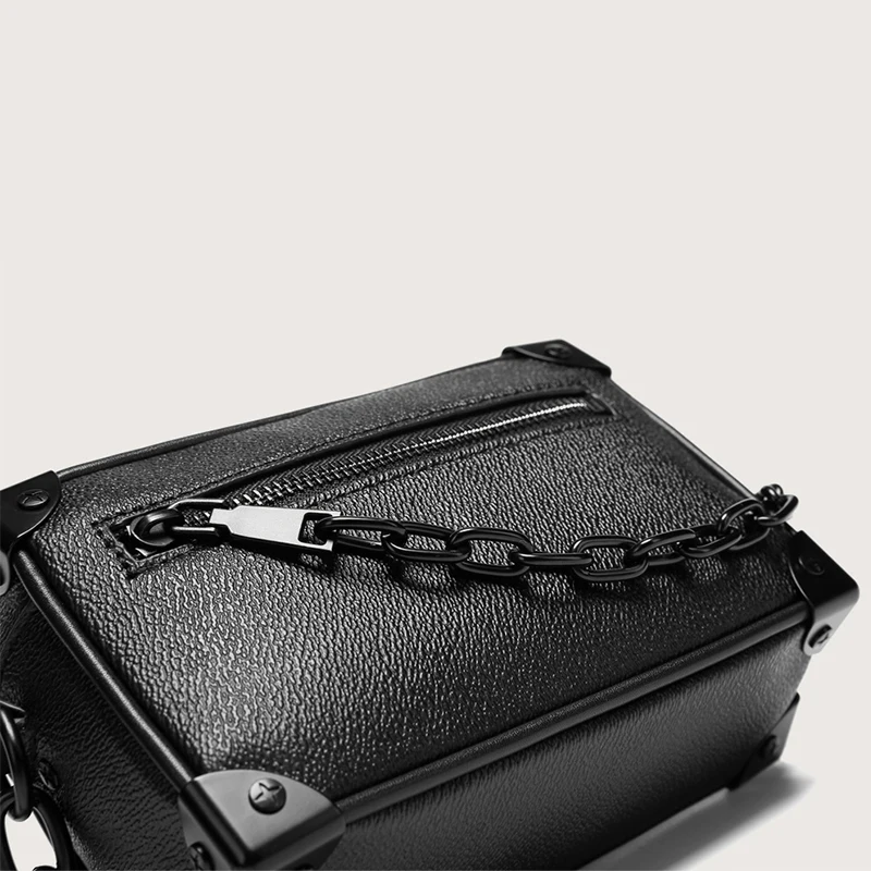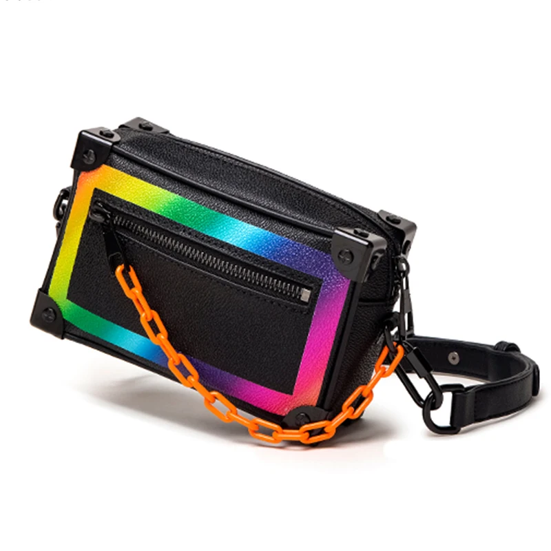 Wholesale Leather Hologram Men's Crossbody Pack Shoulder Messenger Bag With Chain for Men