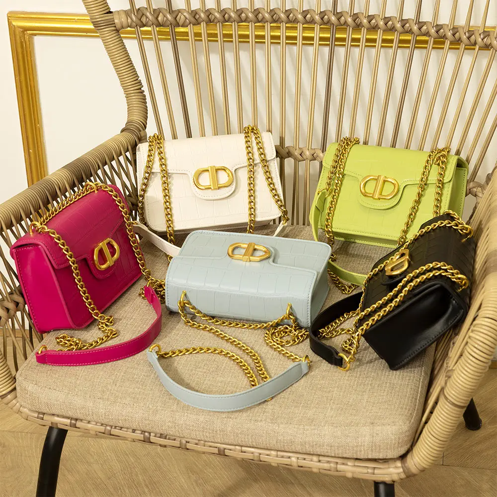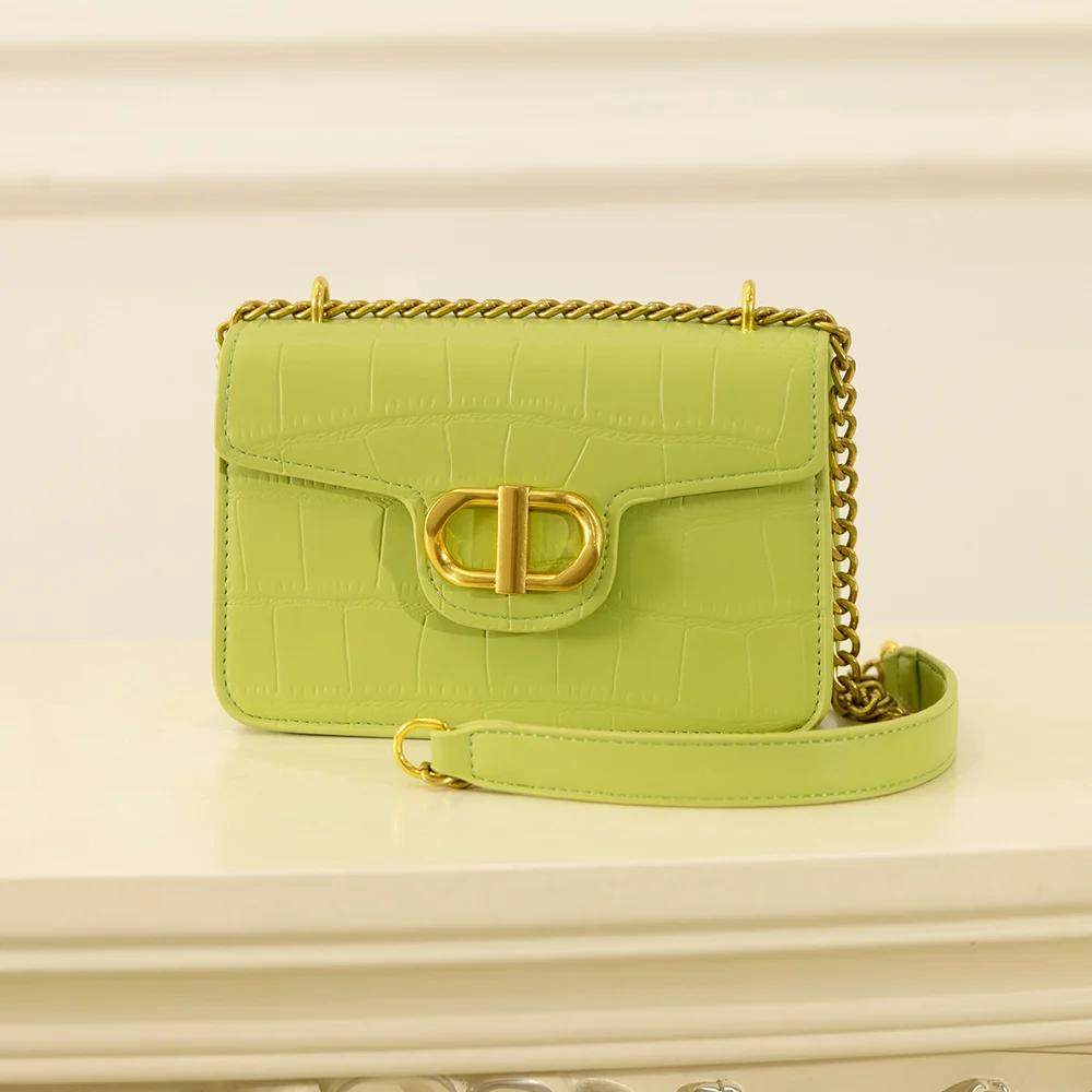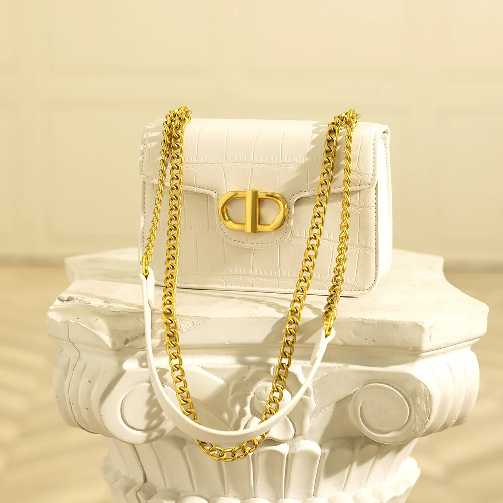 Custom Logo Croc Leather Ladies Chain Sling Bag Fashion Crossbody Side Handbag Purse for Women